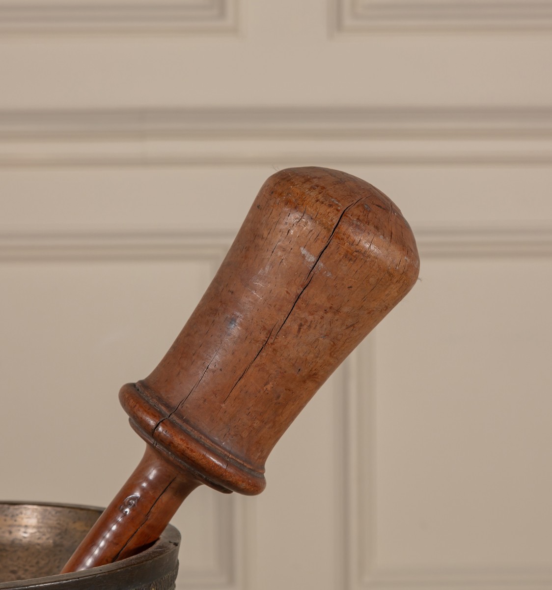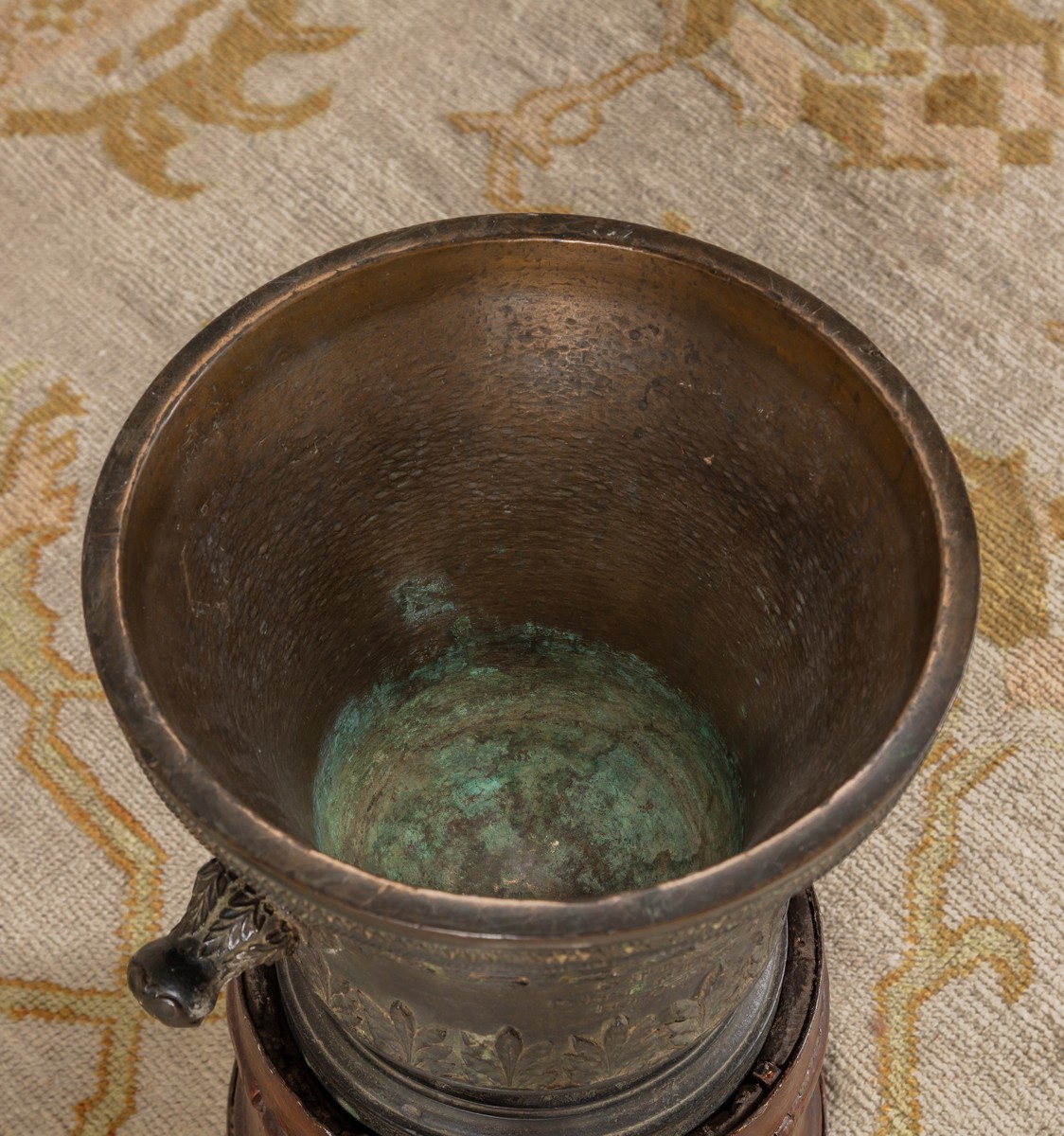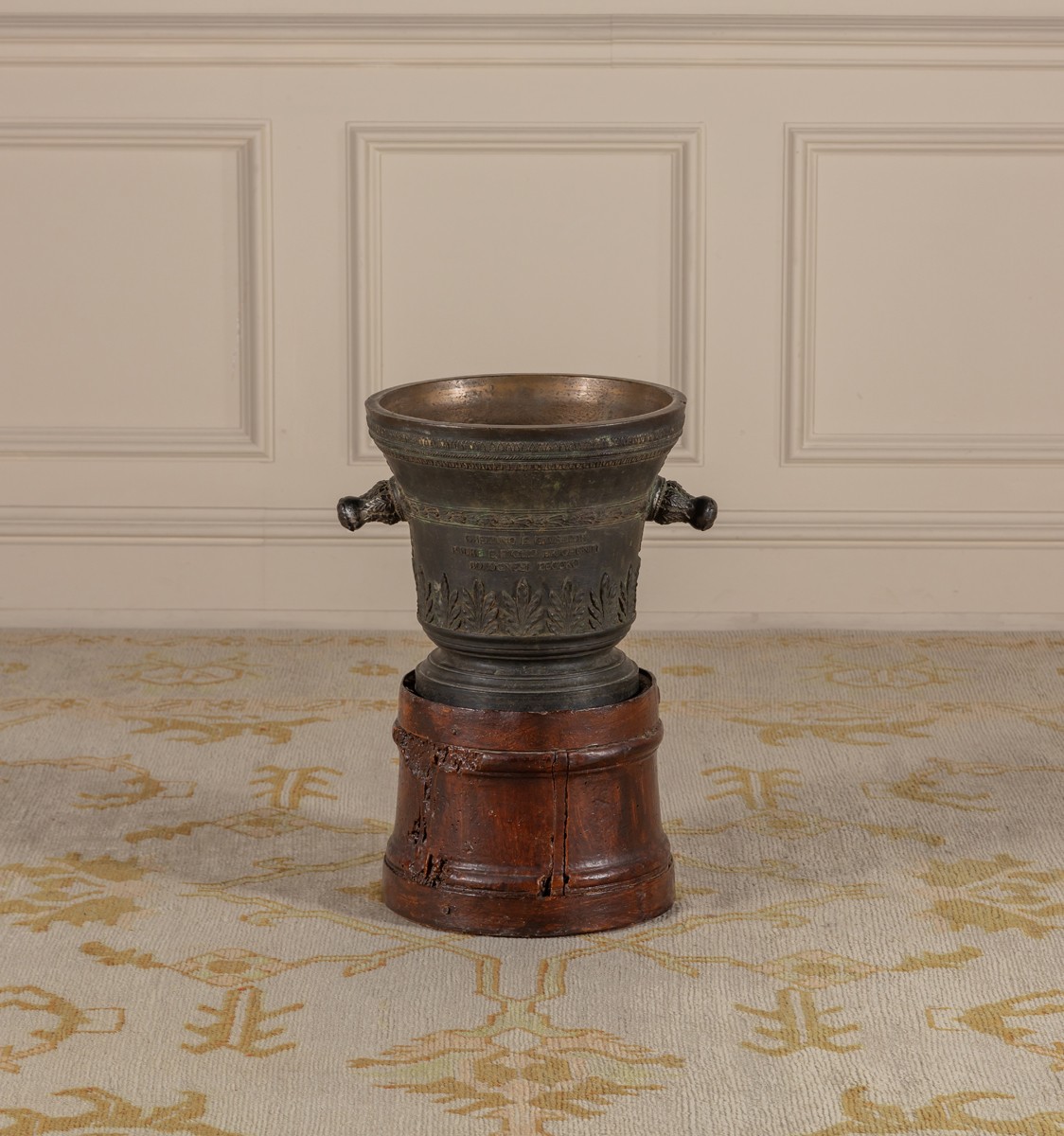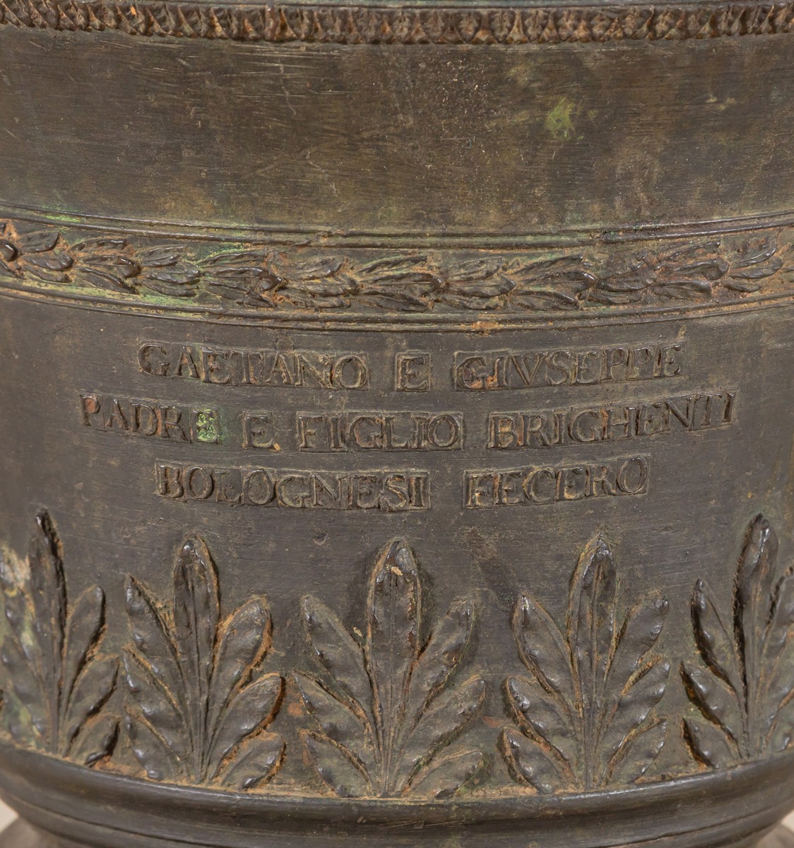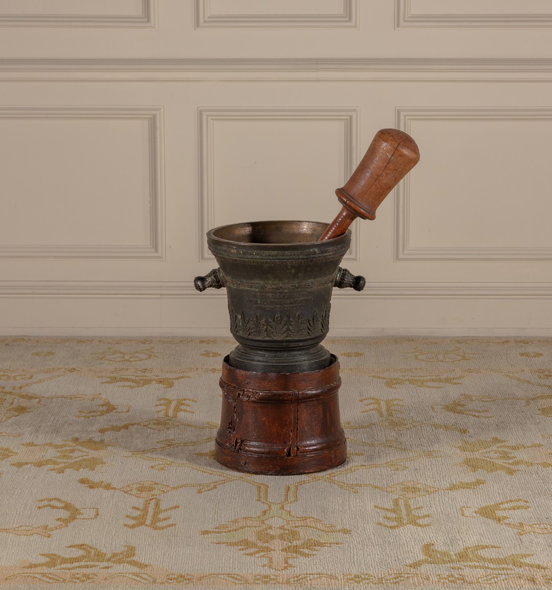 A bronze pestle and mortar, Brighenti foundry, Bologna dated 1825
