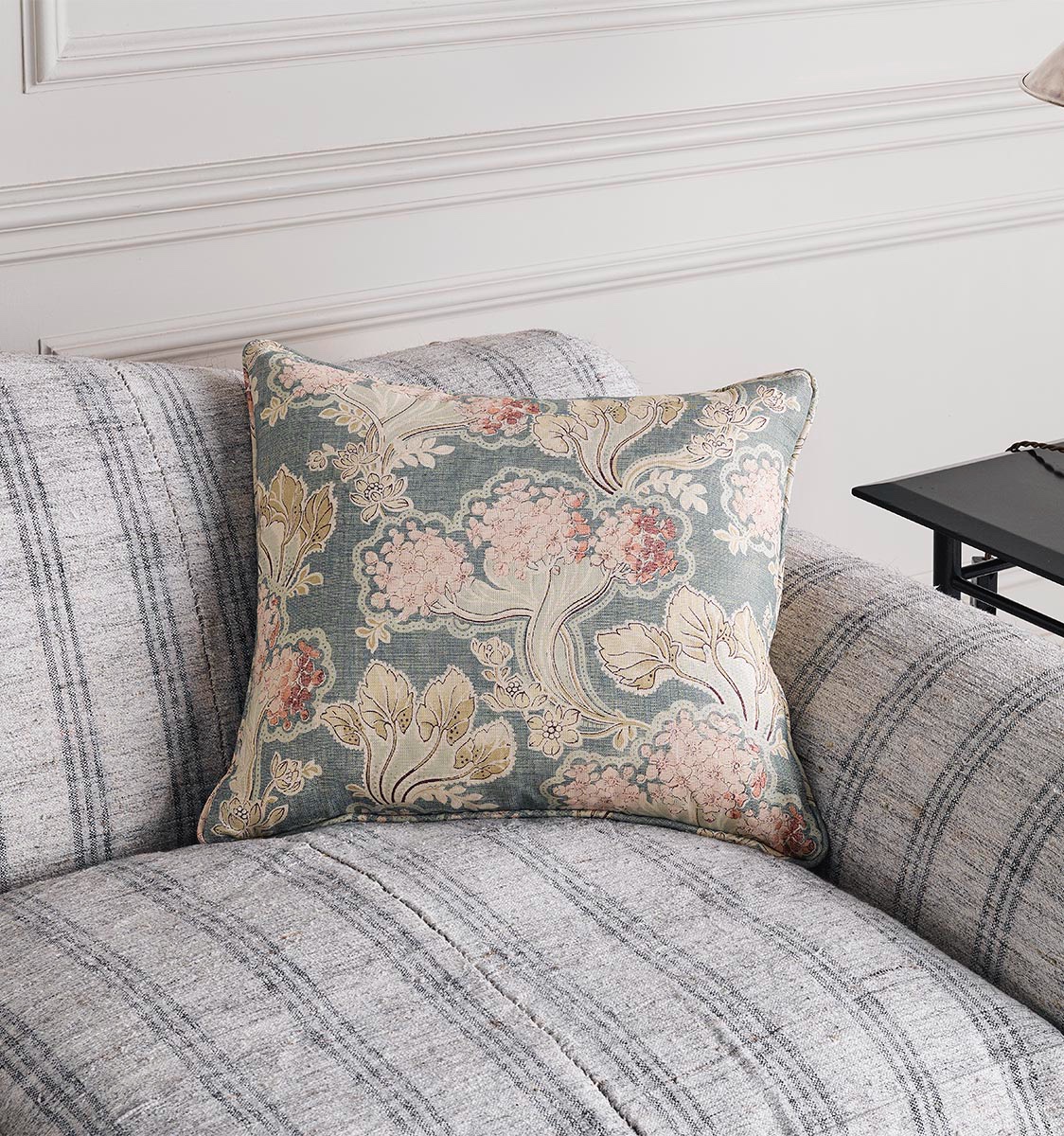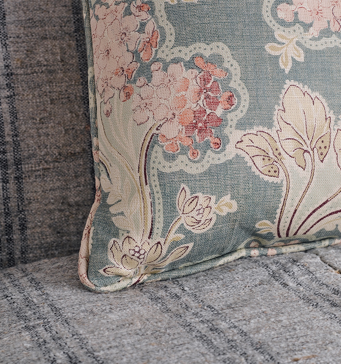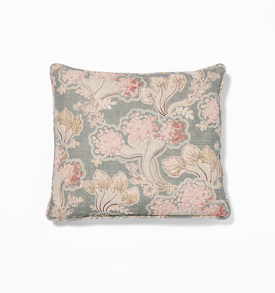 Hydrangea Fabric Cushion with zip and piping. Kindly note pattern placement may differ.