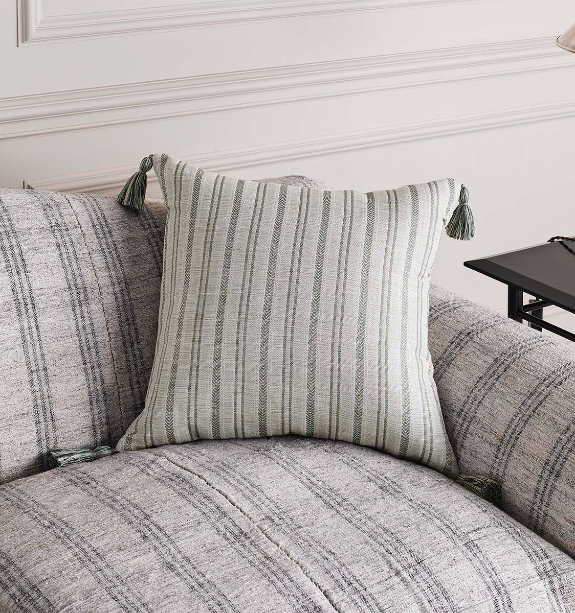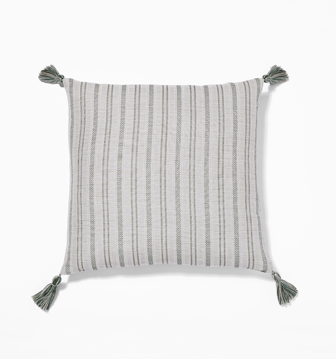 Larsson Linen Forest Fabric Cushion , self backed with tassels, no piping or zip. Kindly note the pattern placement might differ.