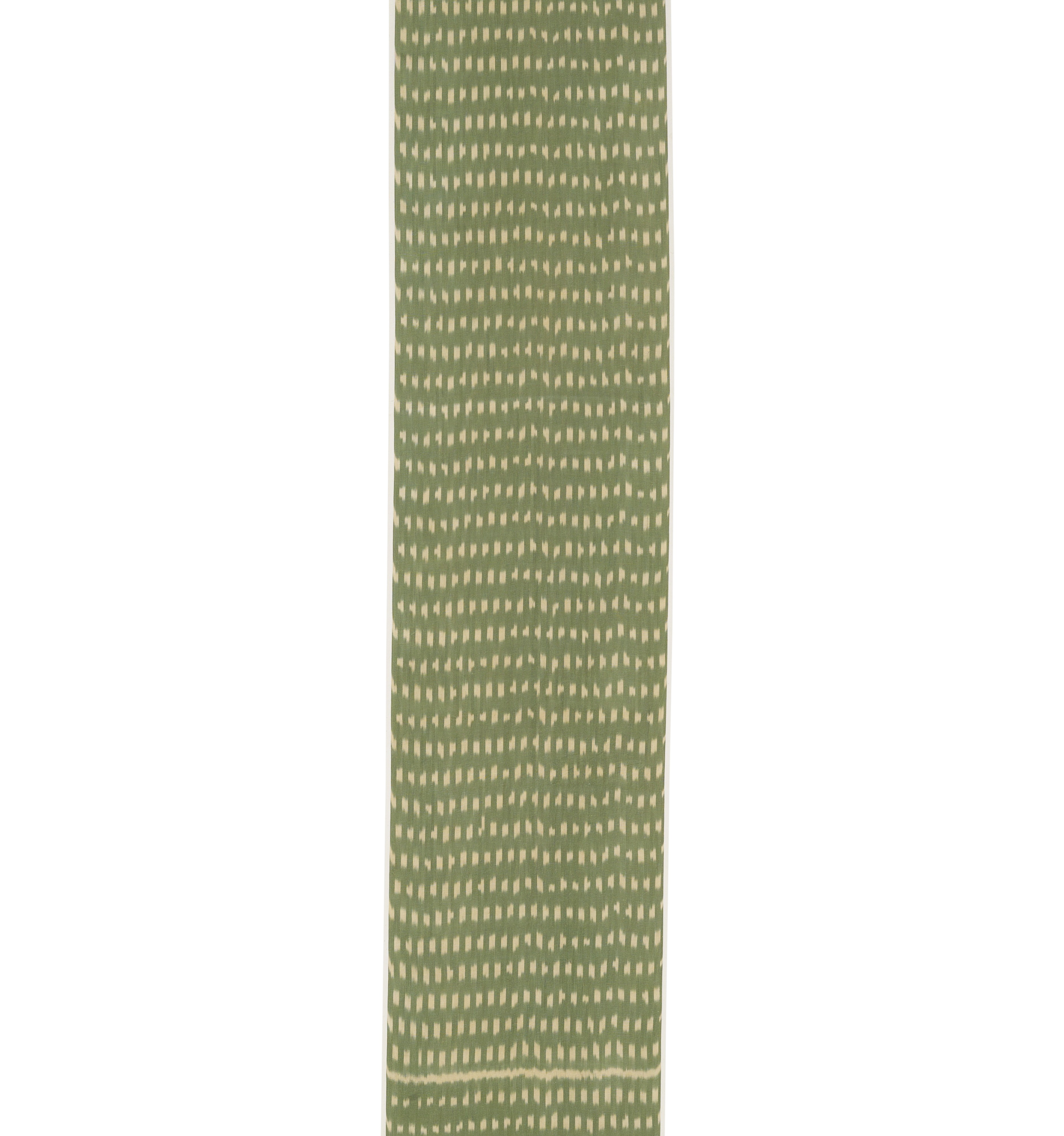 All Robert Kime Ikats are made in the traditional way, hand-dyed and woven on narrow looms in Uzbekistan. As a fabric type, the pattern of a handwoven ikat includes runs of colour, small slubs and threads typical of the craft process. The design mirrors itself every two metres, whereupon a narrow undyed line indicates the repeat. This is entirely intentional and serves to underscore the designs’ authenticity for which Robert Kime Ikats are unmatched.