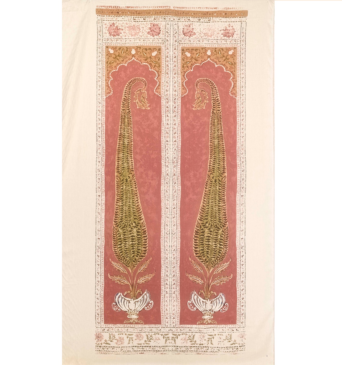This design is based on a late Moghul Indian print, Ashoka being the name of a sacred tree. Kindly note it is sold per panel. The printed width shows the printed dimensions of one panel.
