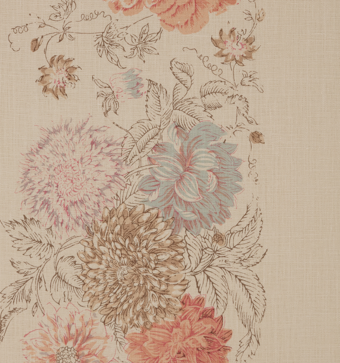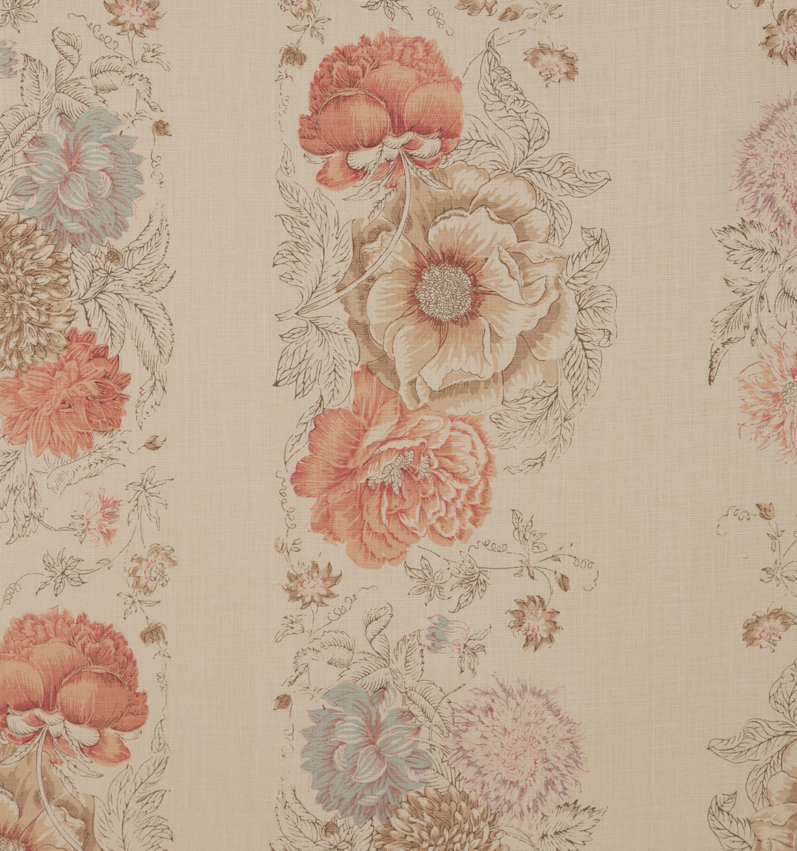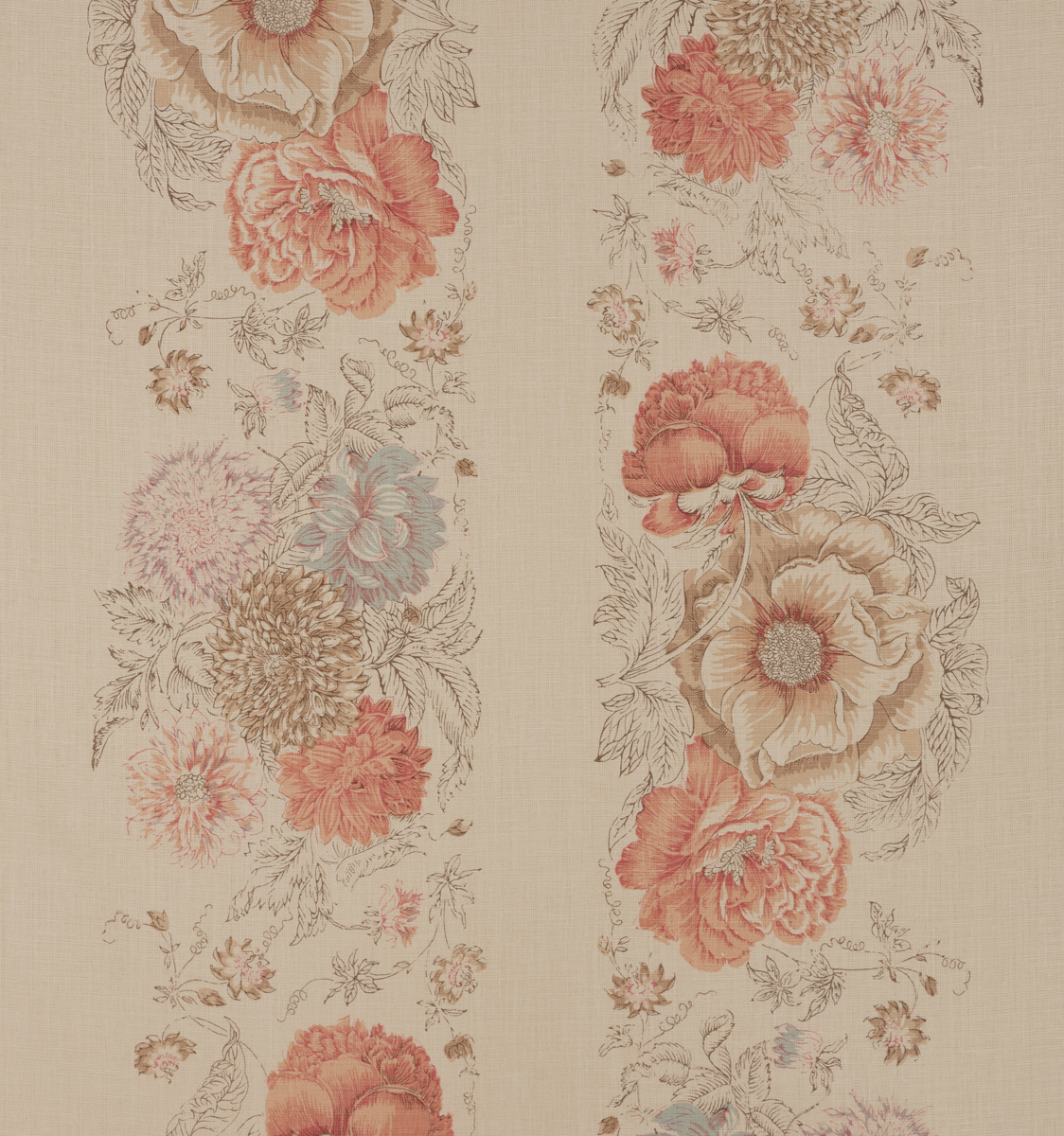 Inspired by a magnificent C19th chintz used on a four-poster bed at Chatsworth. Can be cut and used as a border.