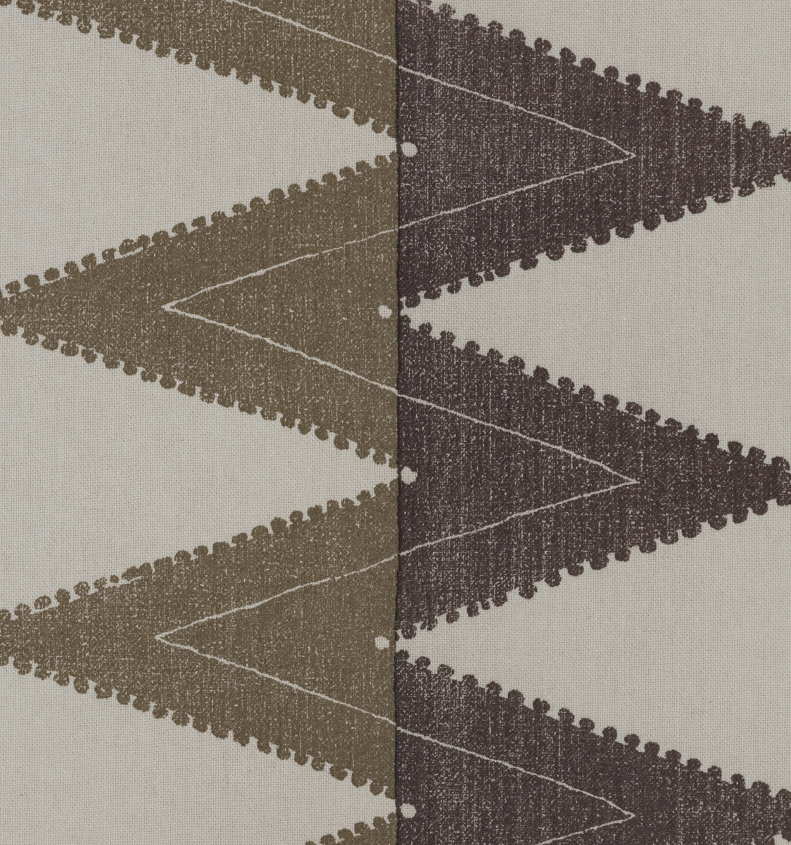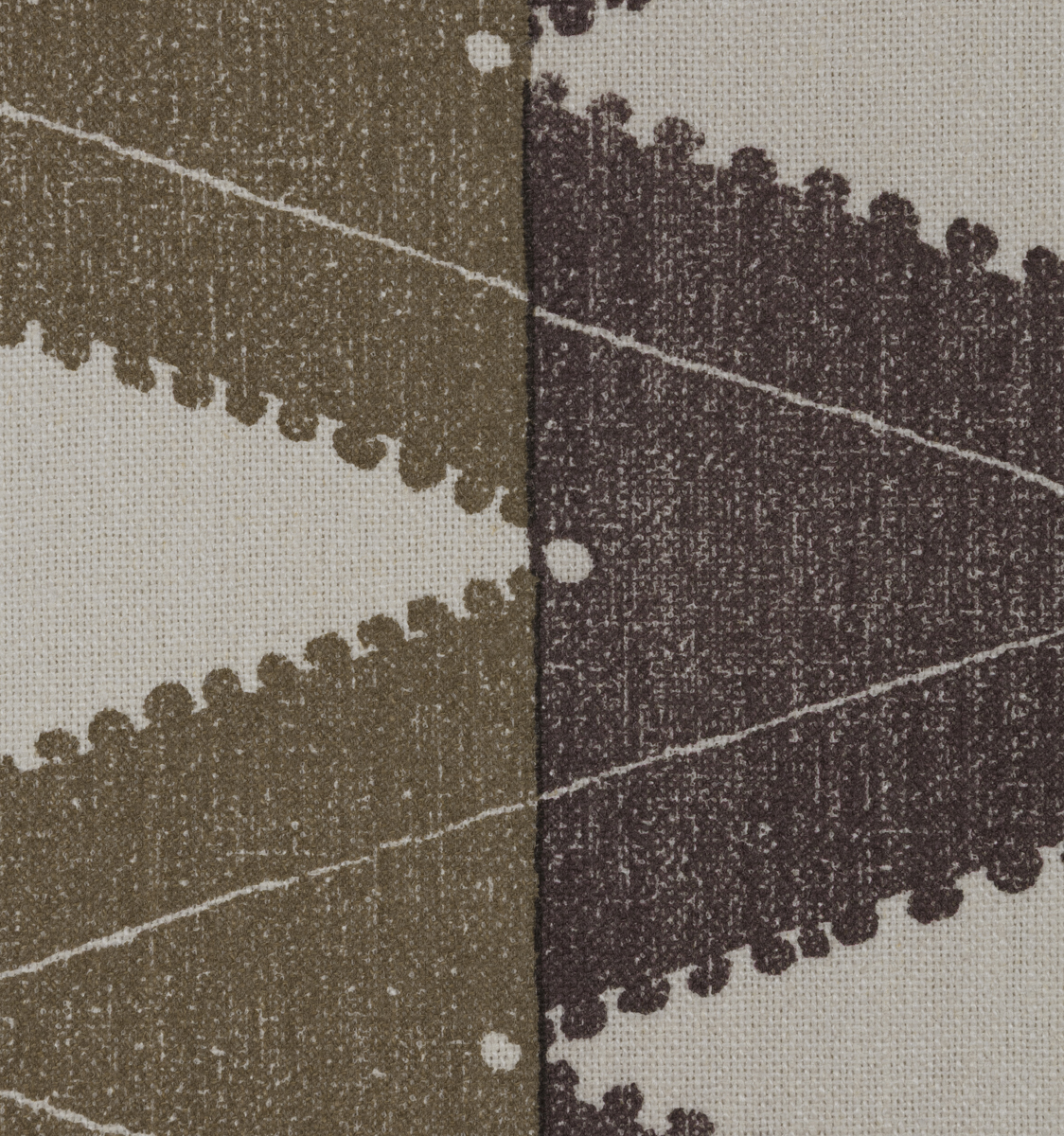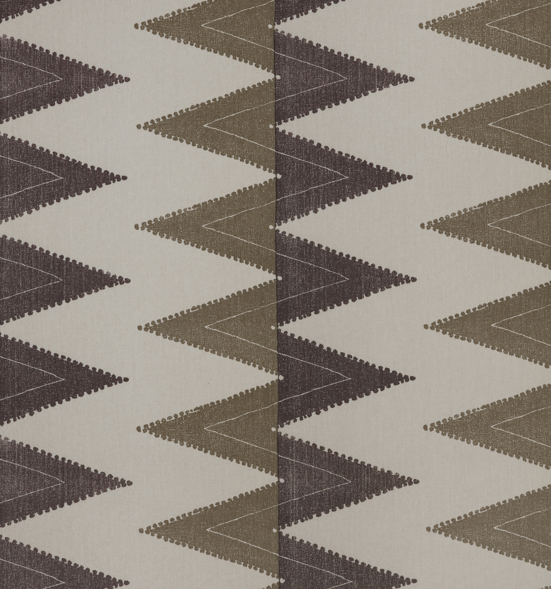 A graphic printed pattern that is split in two shades of beige and grey.