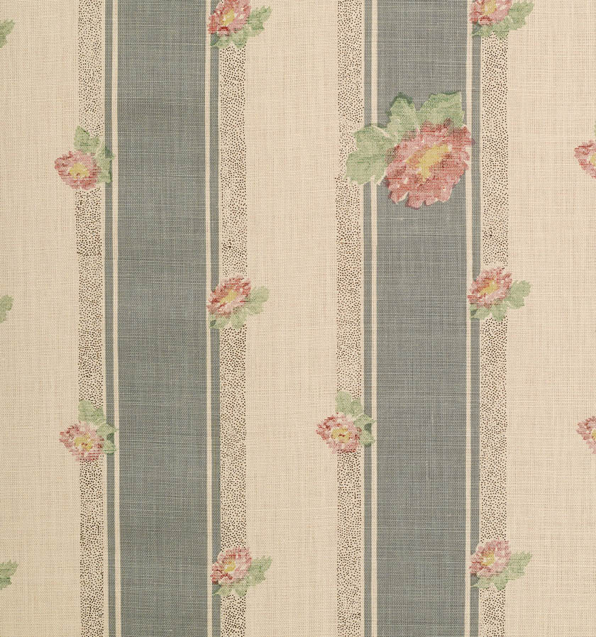 A charming C19th French provincial fabric combining vertical stripes with sprigs of roses.
