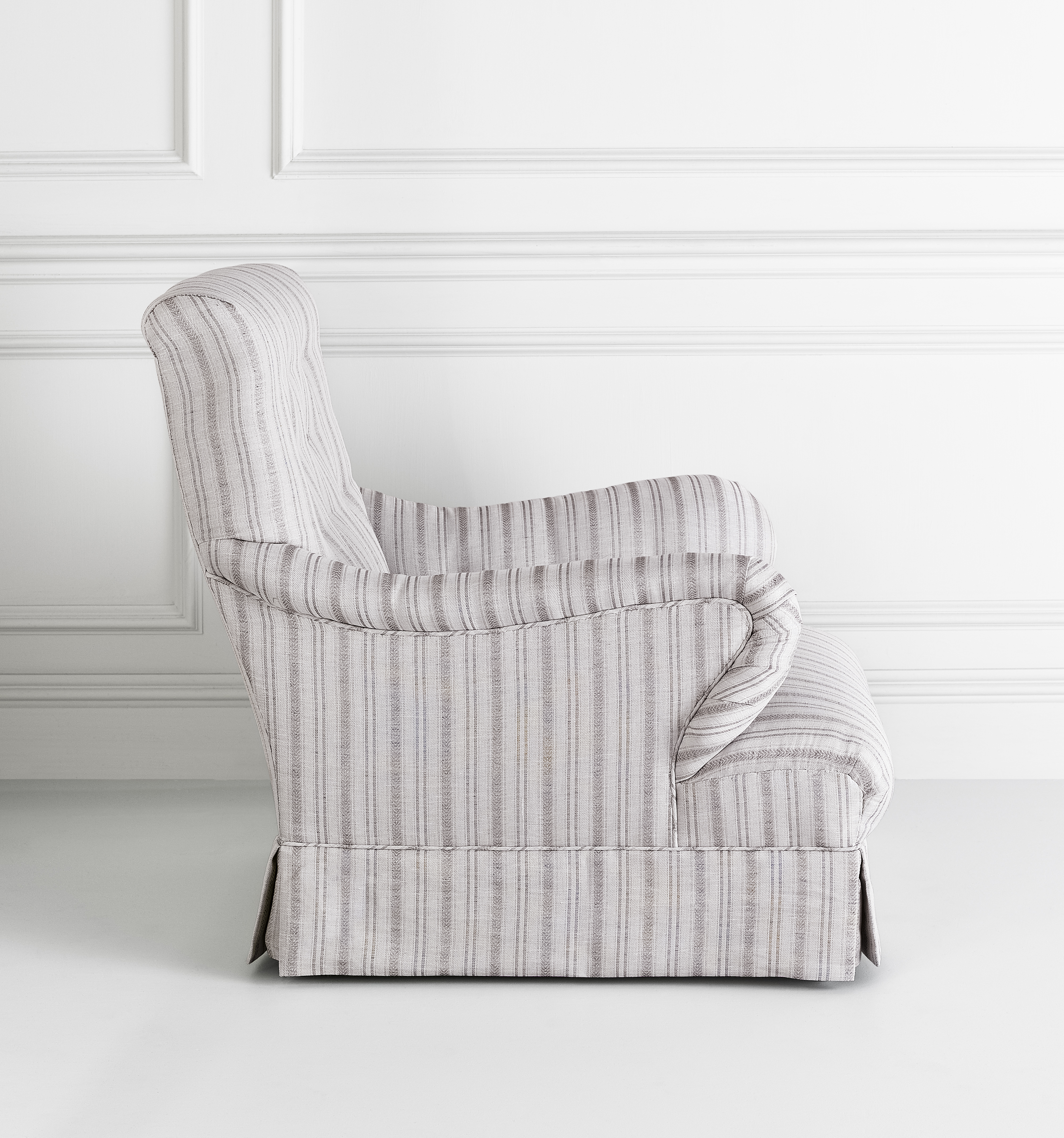 Adapted from an antique faded Swedish ticking. This fabric is a finely detailed weave and is reversible. The Larsson fabrics are central to the Robert Kime collection.