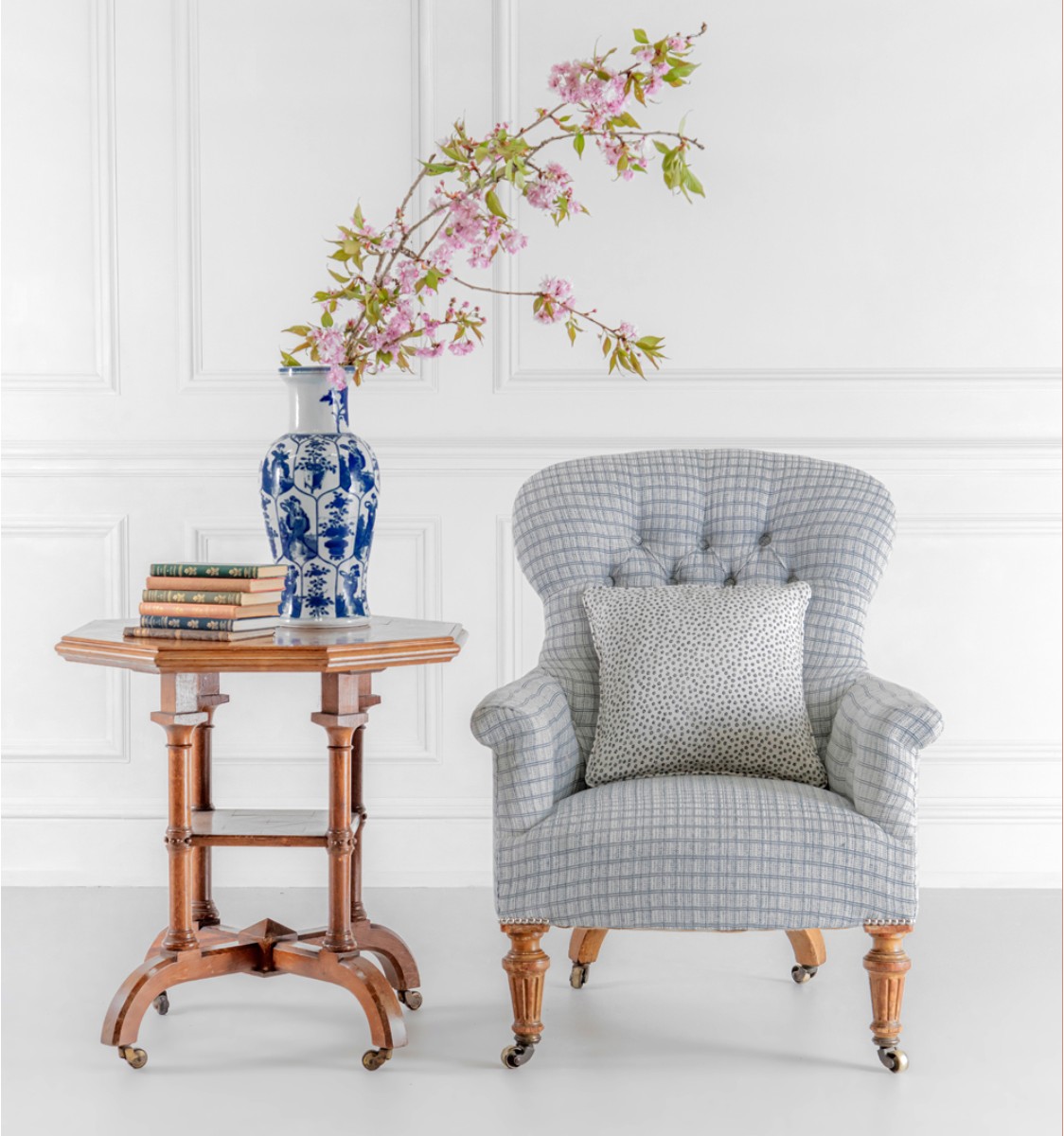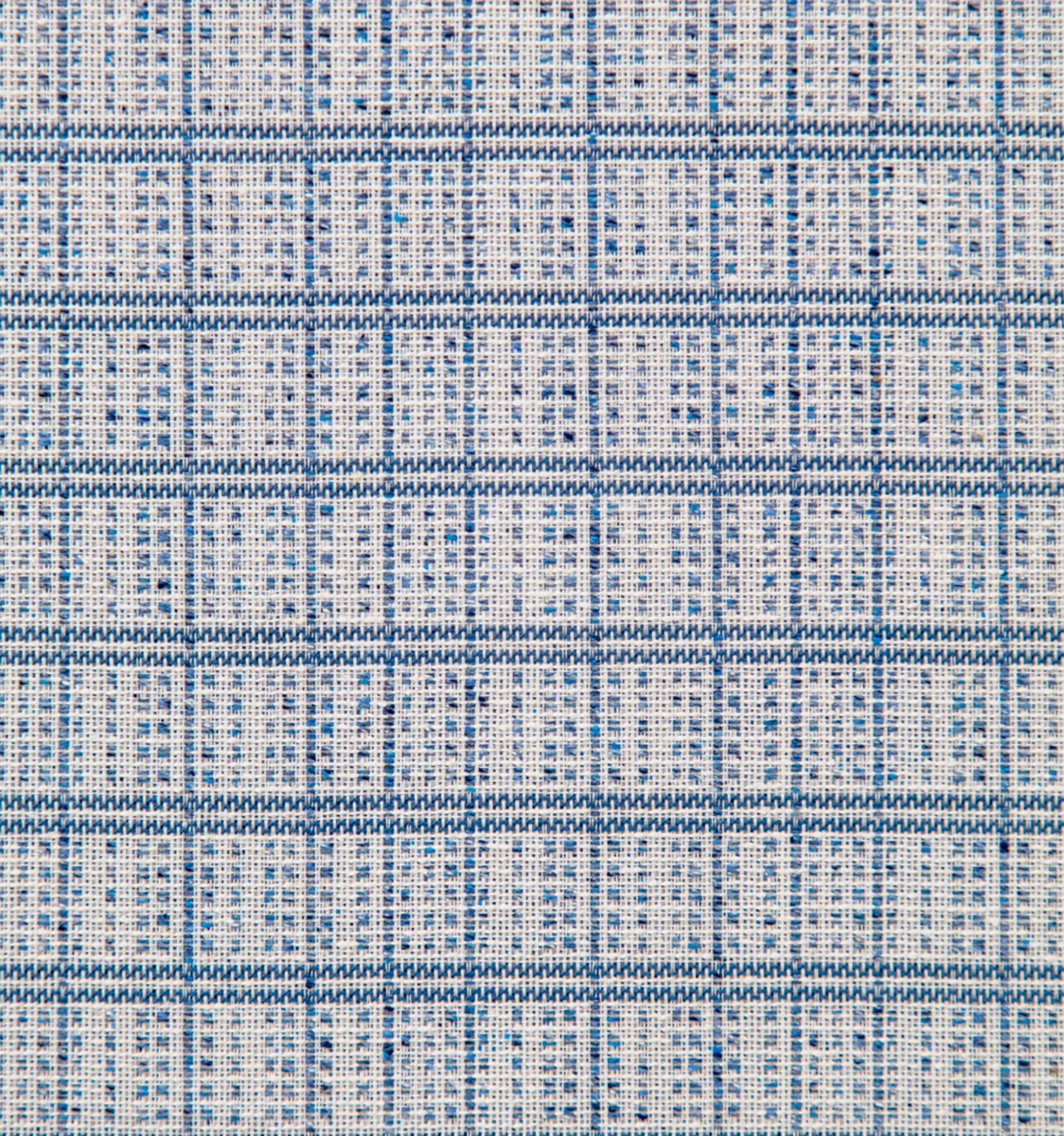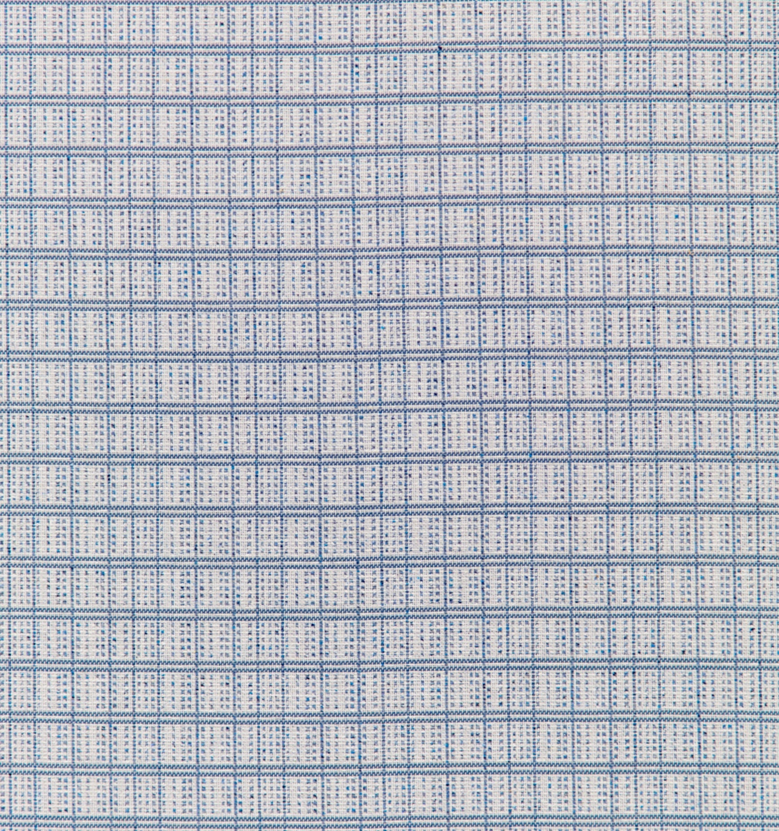 This blue and white cotton/silk weave creates a checked pattern inspired by a decorative light woven border found on the original fragment of our Chou design.