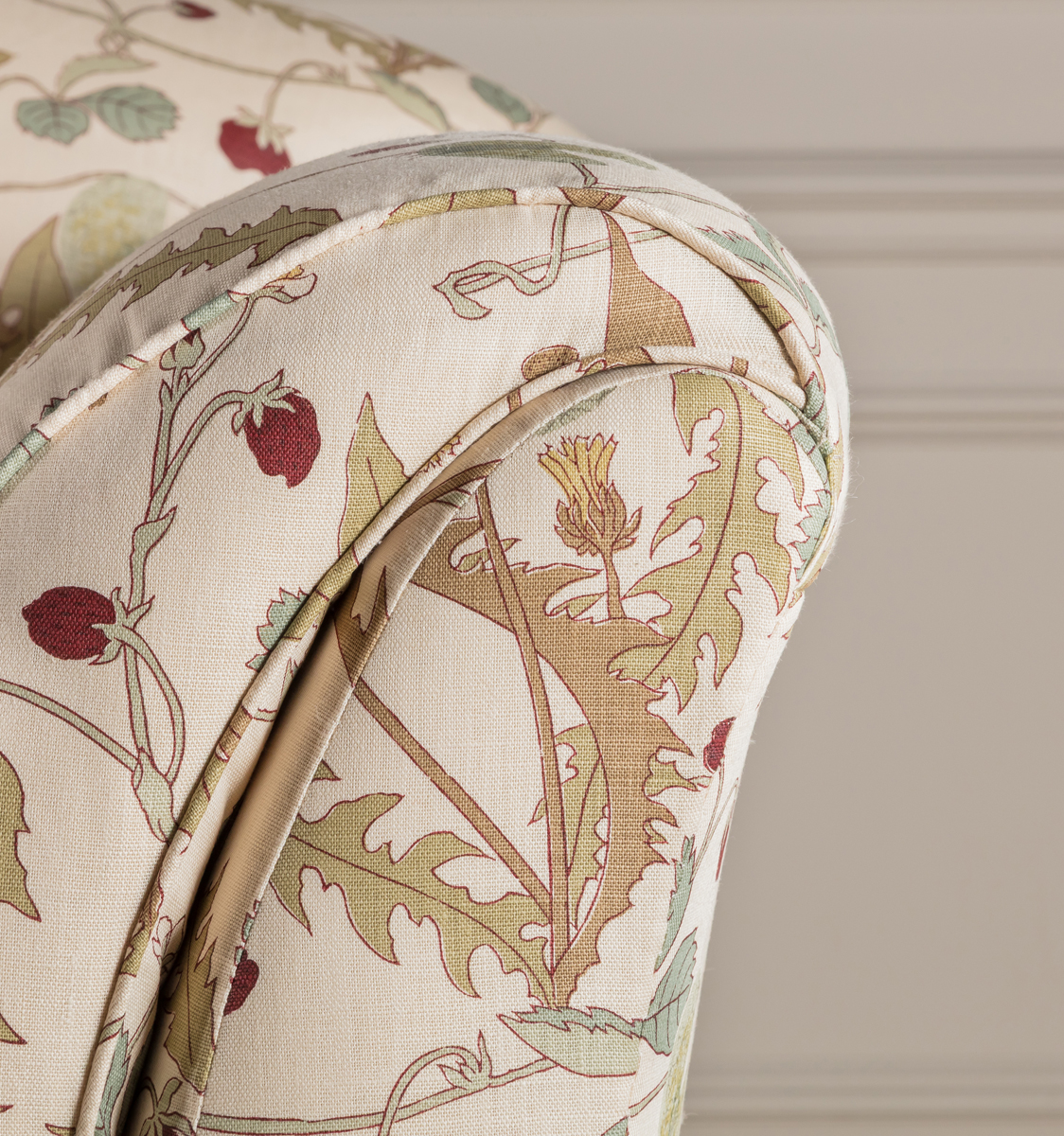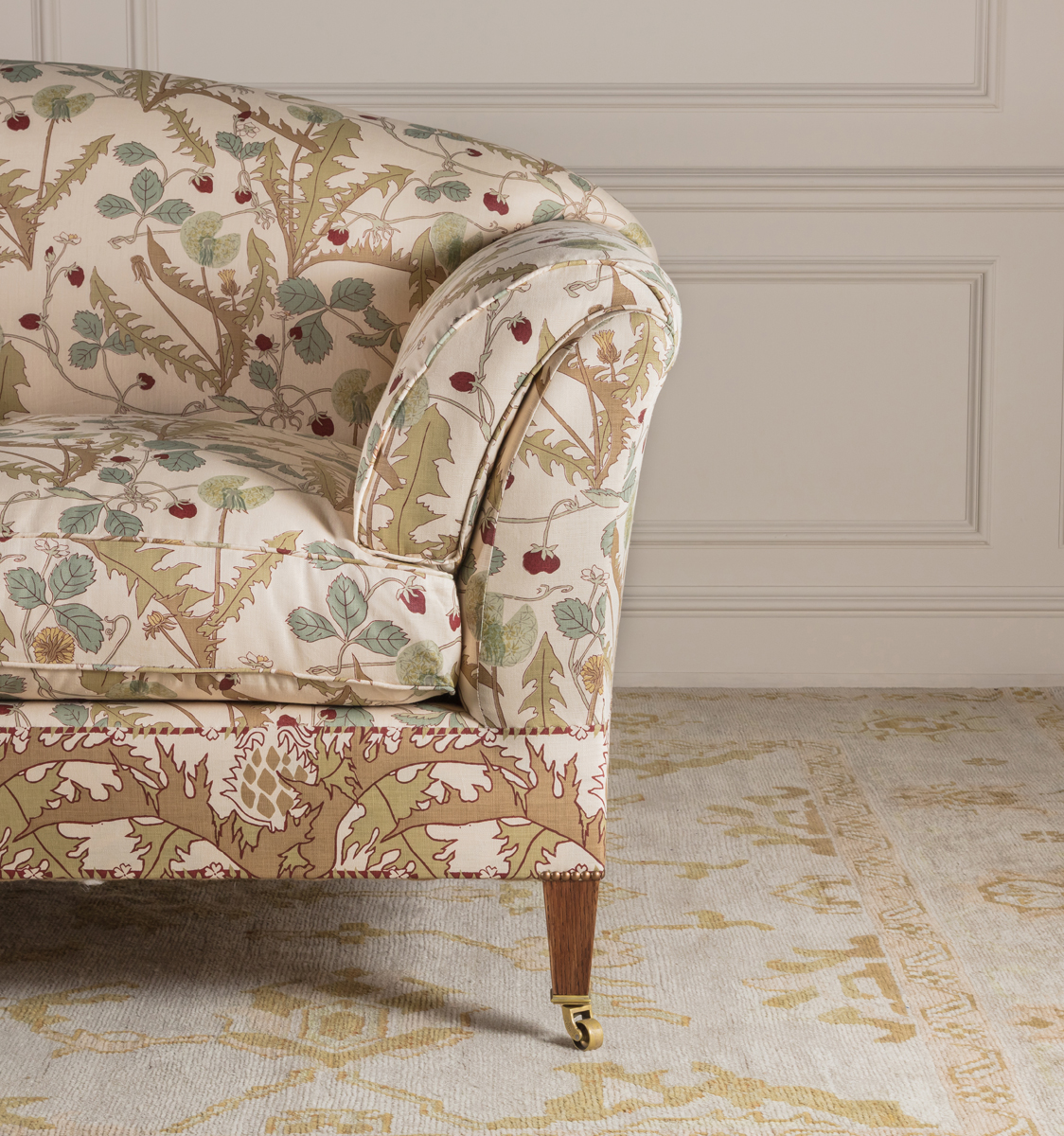 The Priory Sofa can be upholstered in the Robert Kime fabric of your choice. Shown here, upholstered in Robert Kime Dandelion Clock, Turin Major and Albi.
