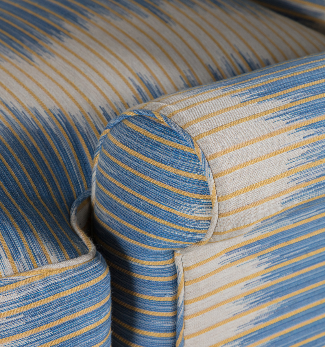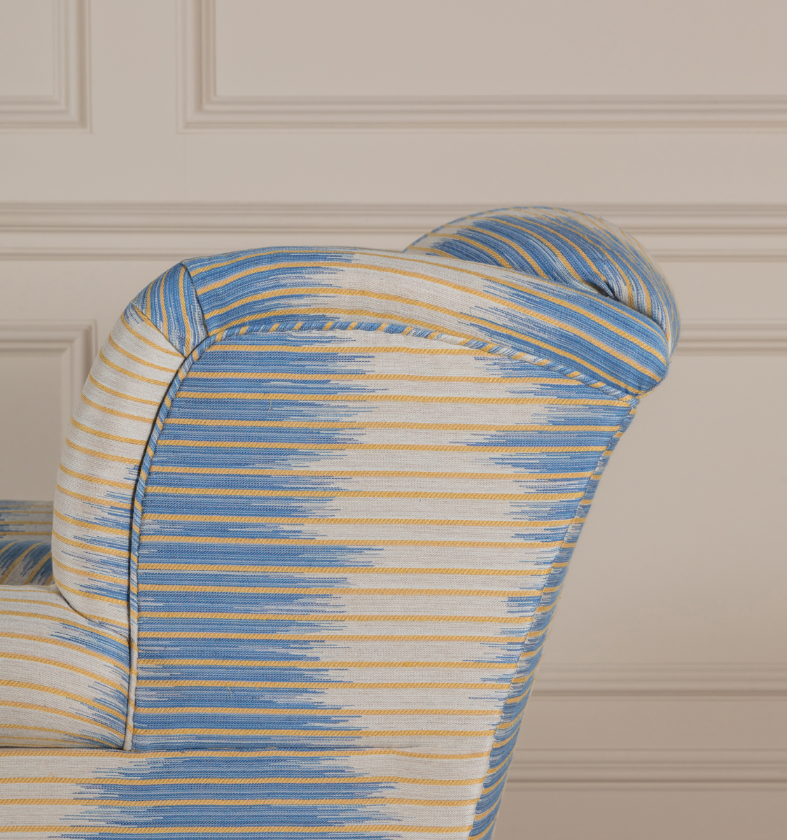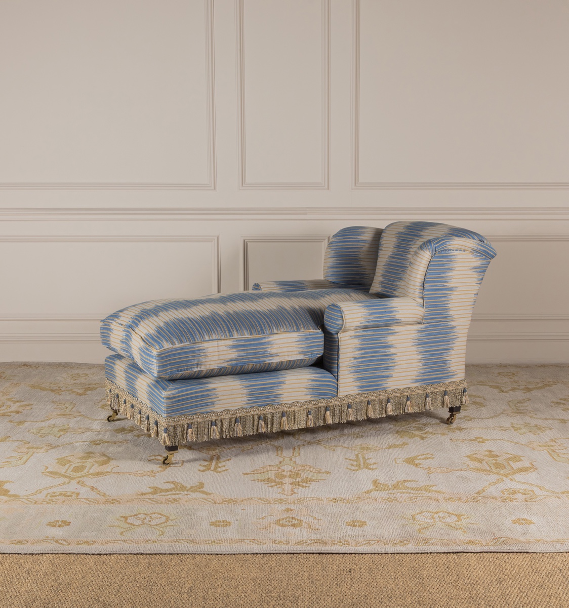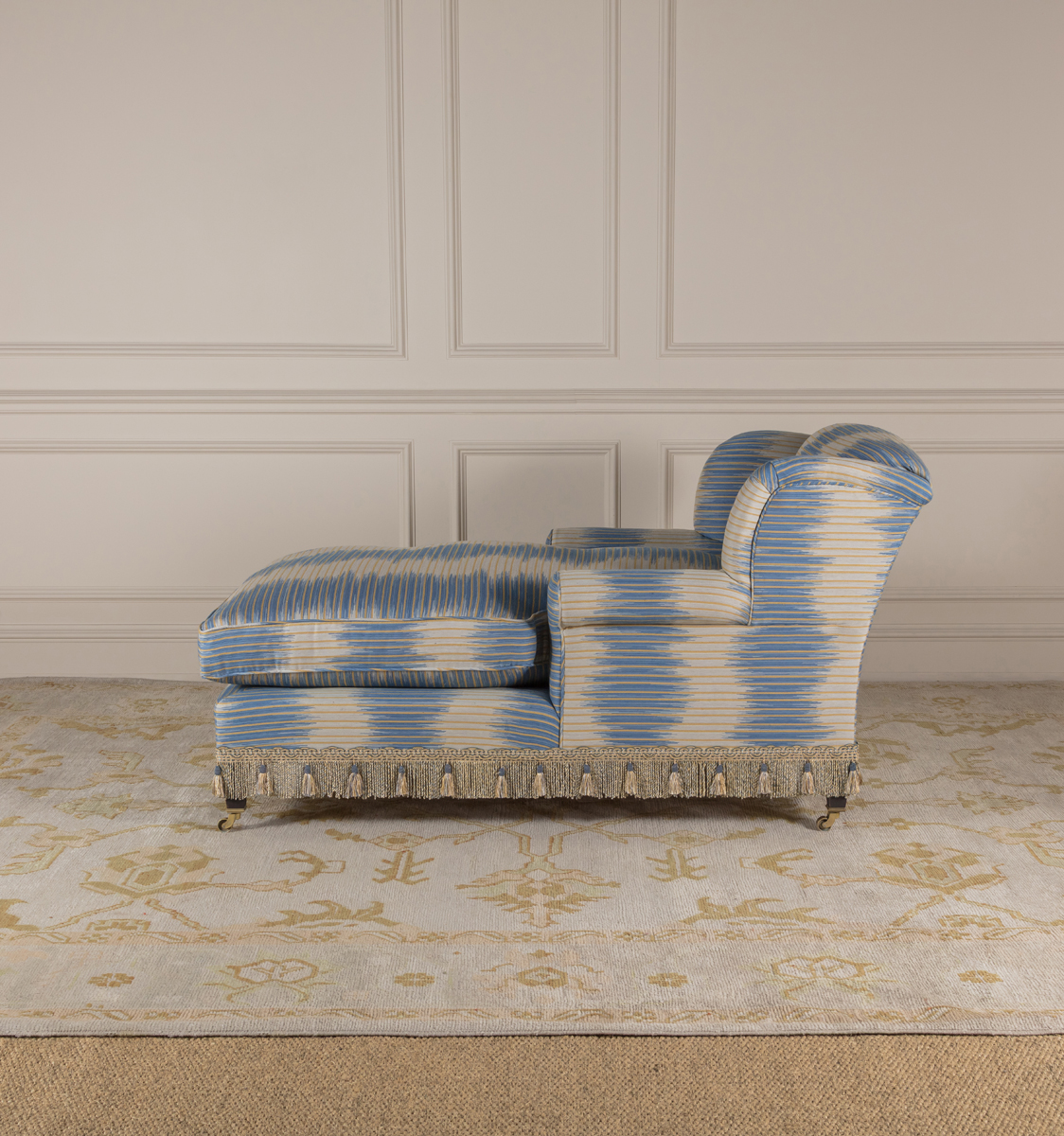 The Savernake Daybed can be upholstered in the Robert Kime fabric of your choice. Shown here, upholstered in Robert Kime Collection Frensham fabric.
