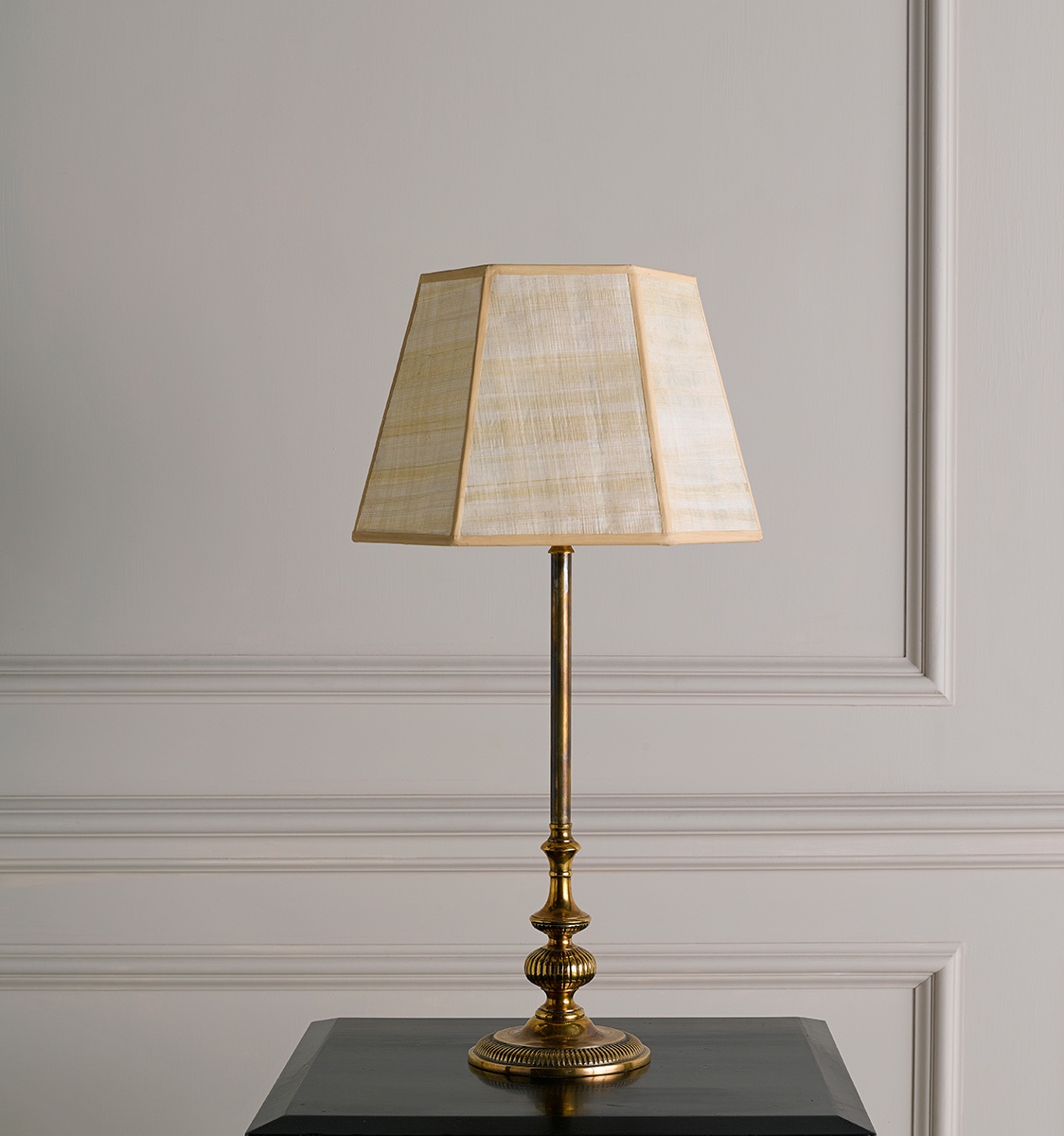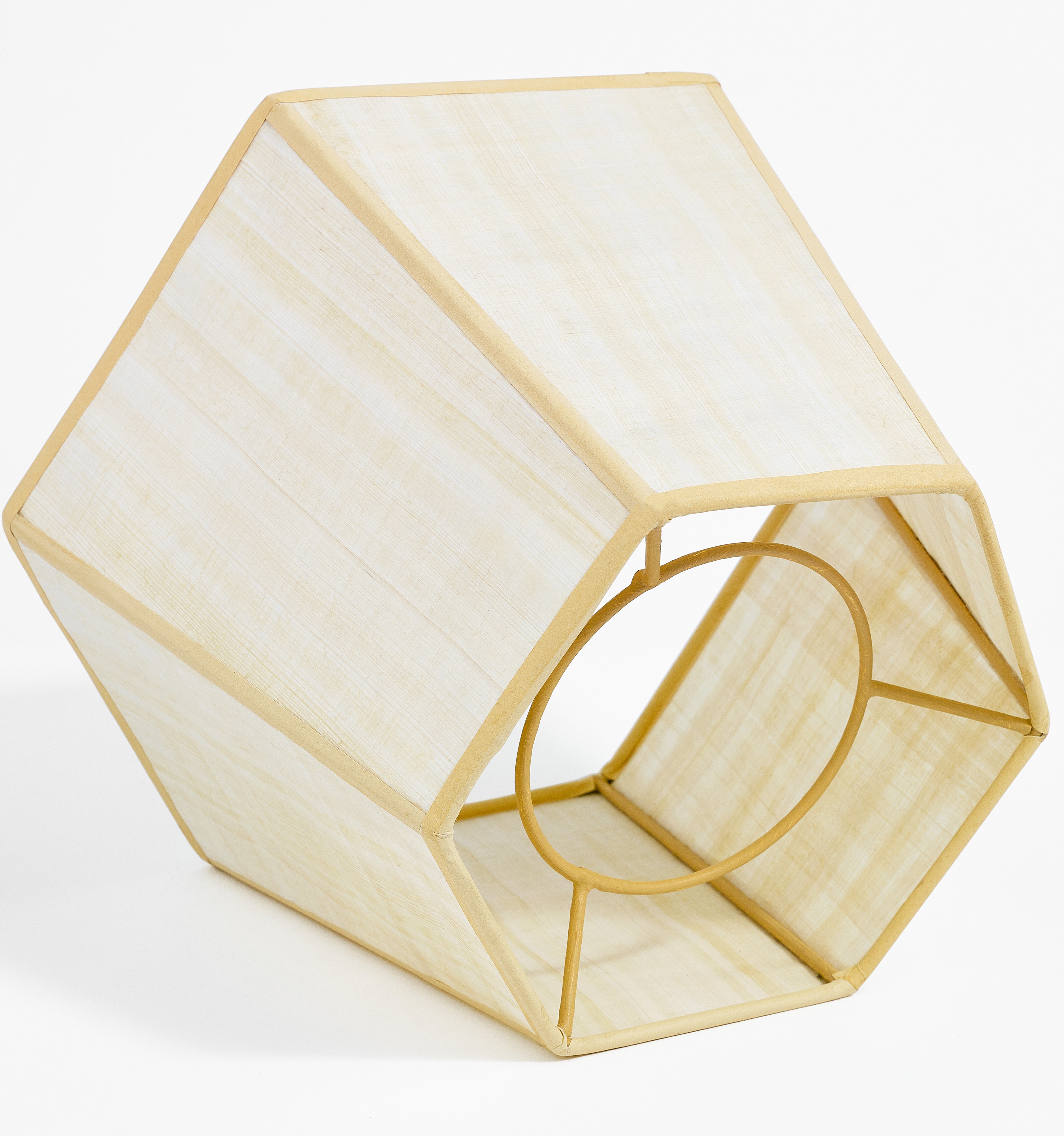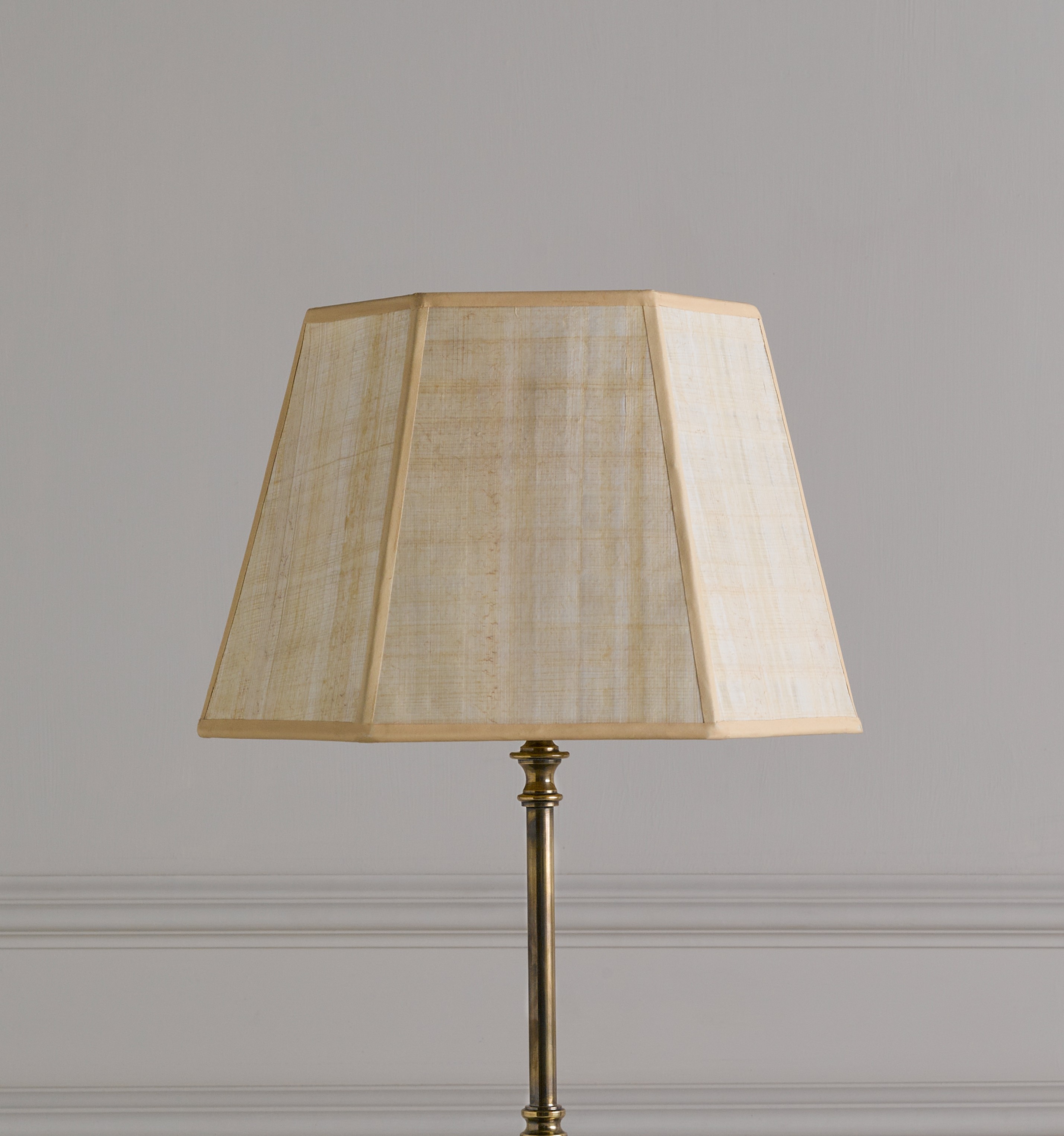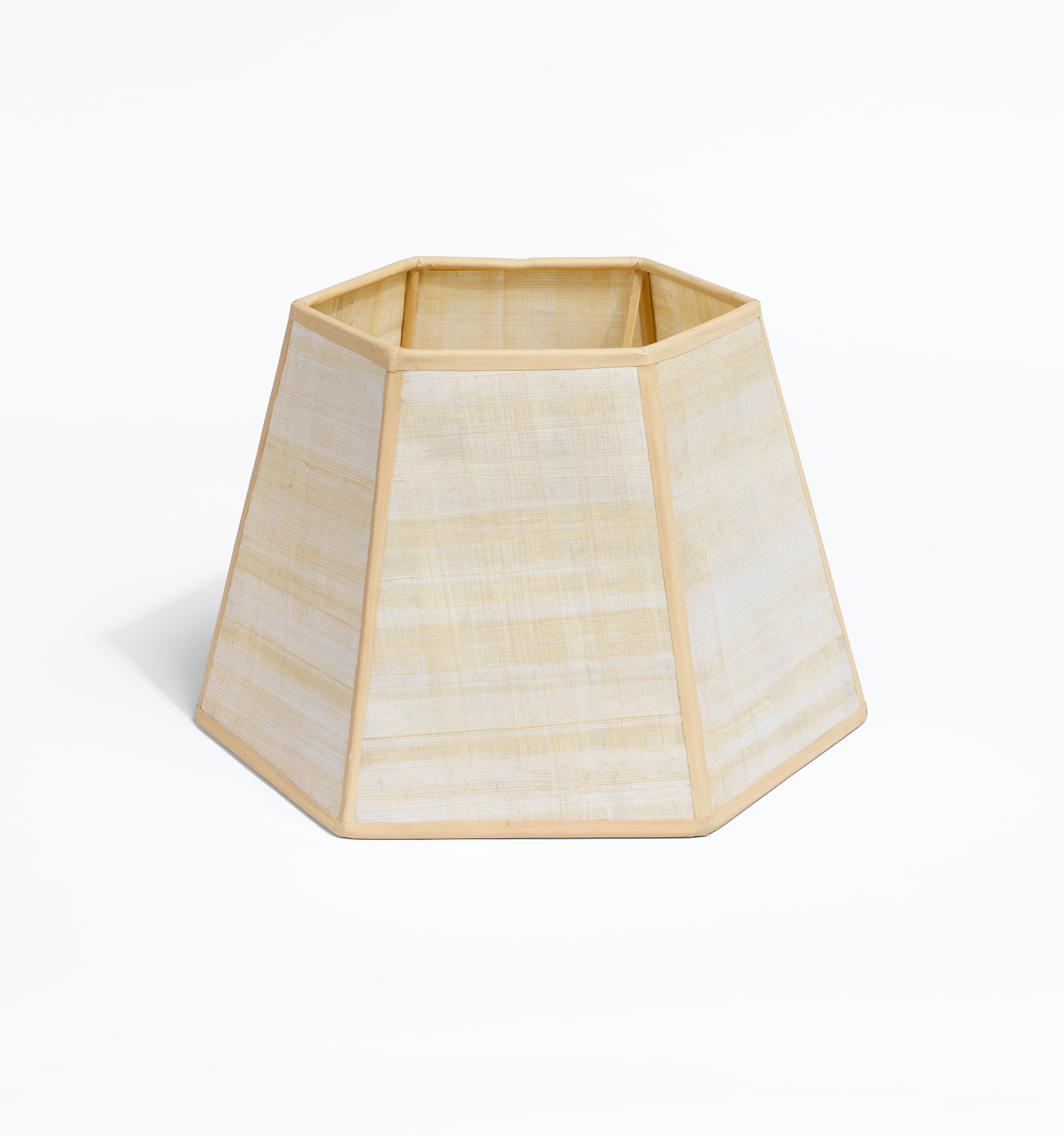 Crisp hexagonal shade made from papyrus. Papyrus is a natural product therefore it may vary in shading, texture and grain, which is part of its beauty.