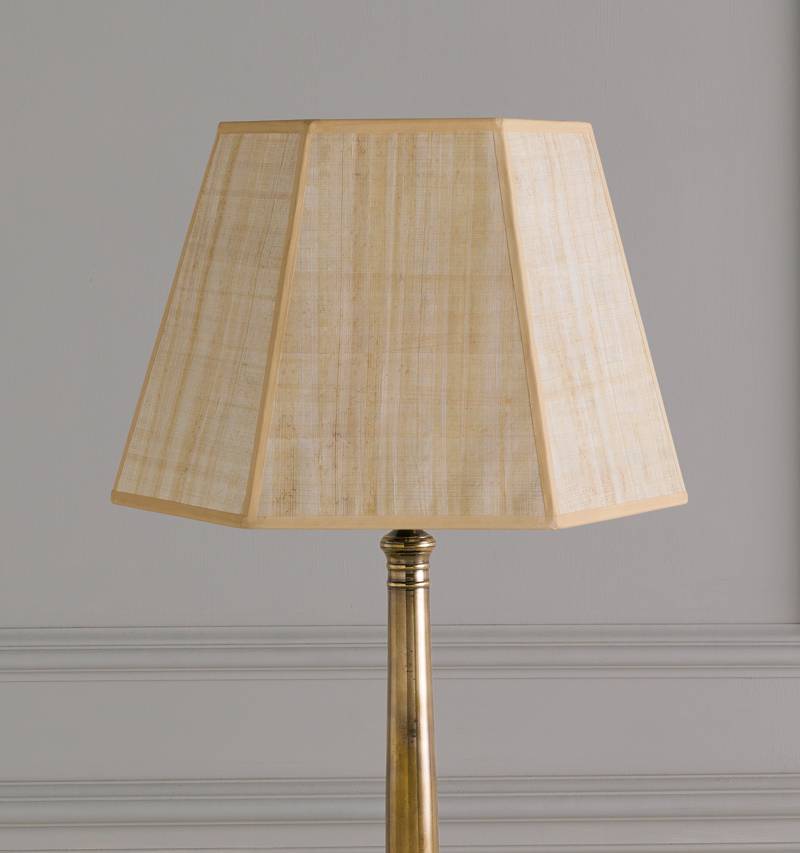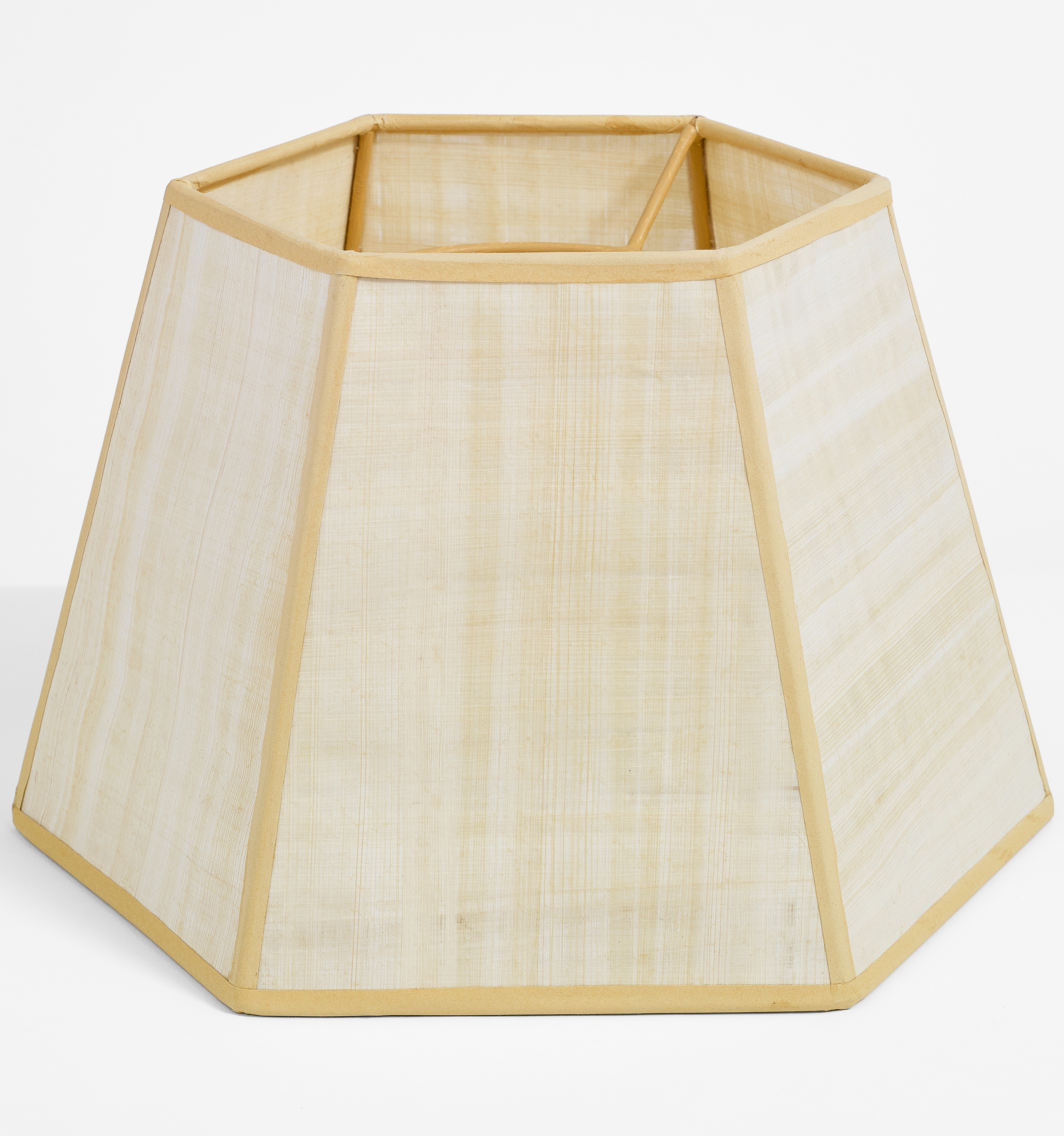 Crisp hexagonal shade made from papyrus. Papyrus is a natural product therefore it may vary in shading, texture and grain, which is part of its beauty.