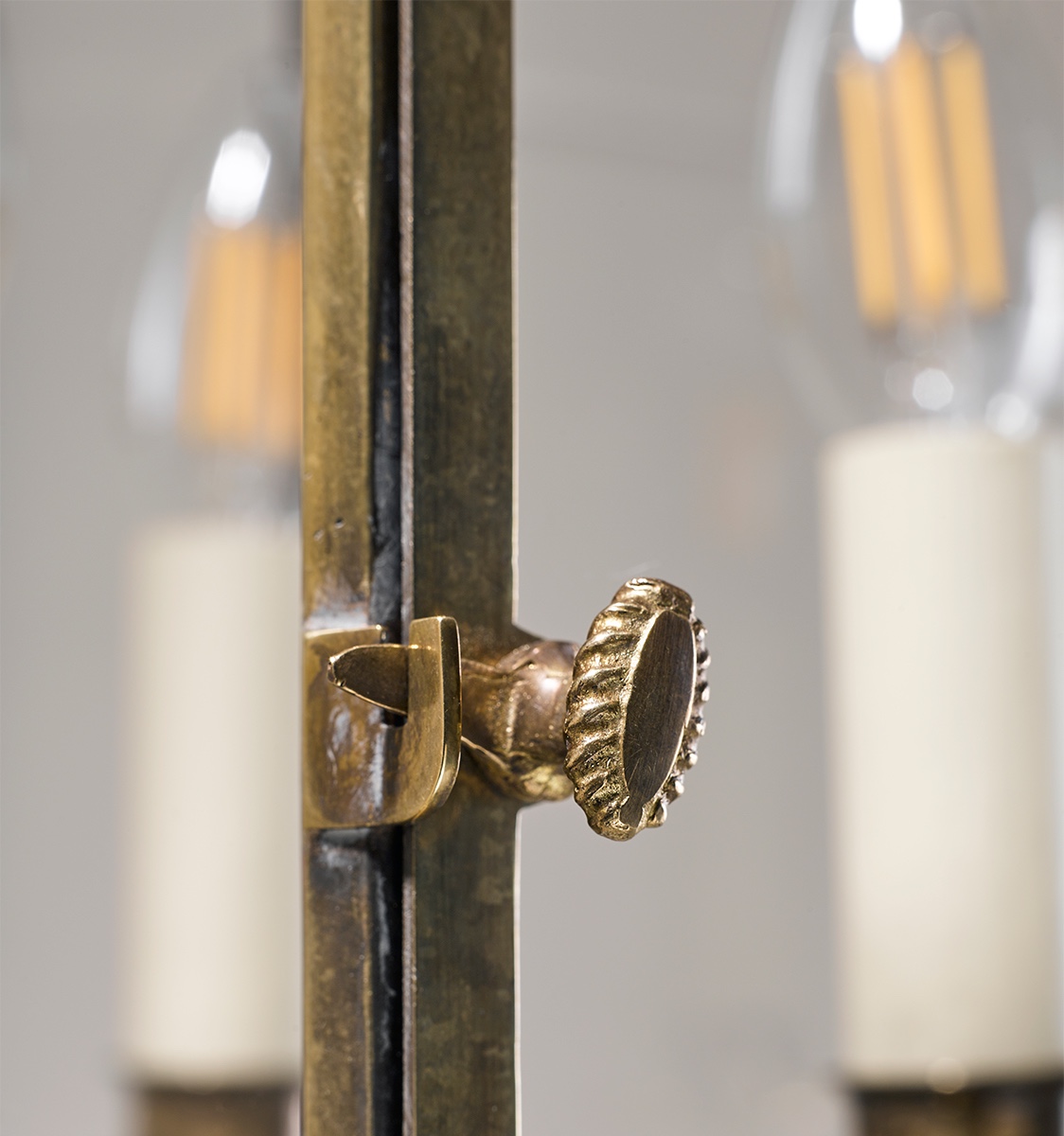 Inspired by an original C18th lantern of Robert's own collection, shown here in Antique Brass. The last image shows the size comparison between the (Large) Georgian Lantern and the Small Georgian Lantern. Please also note in the same image, the large Georgian Lantern placed on the left is in a bespoke Antique Gilt finish.