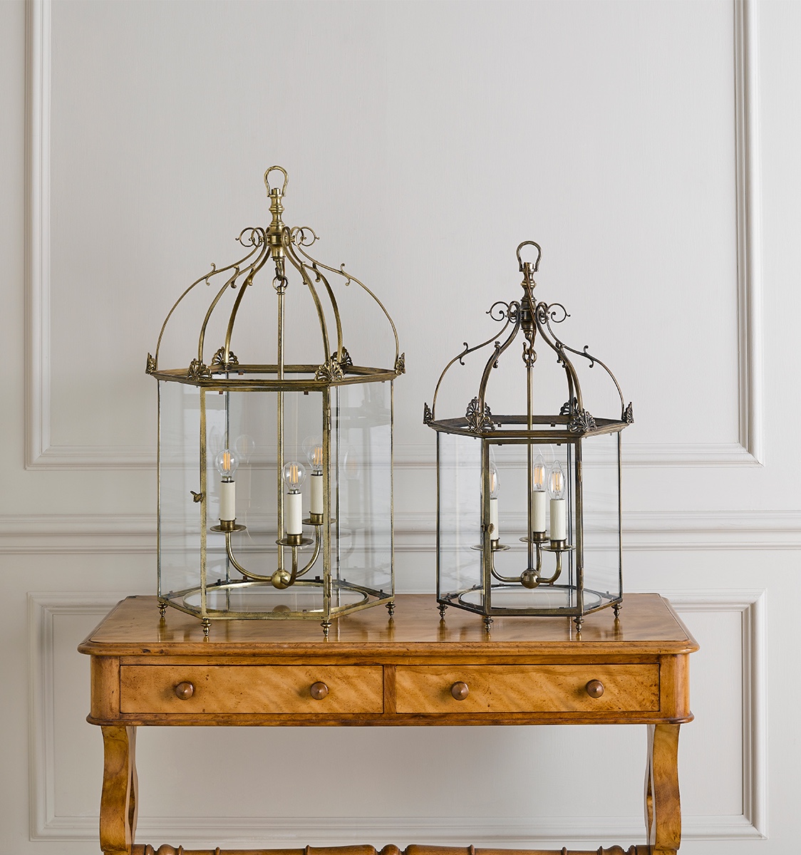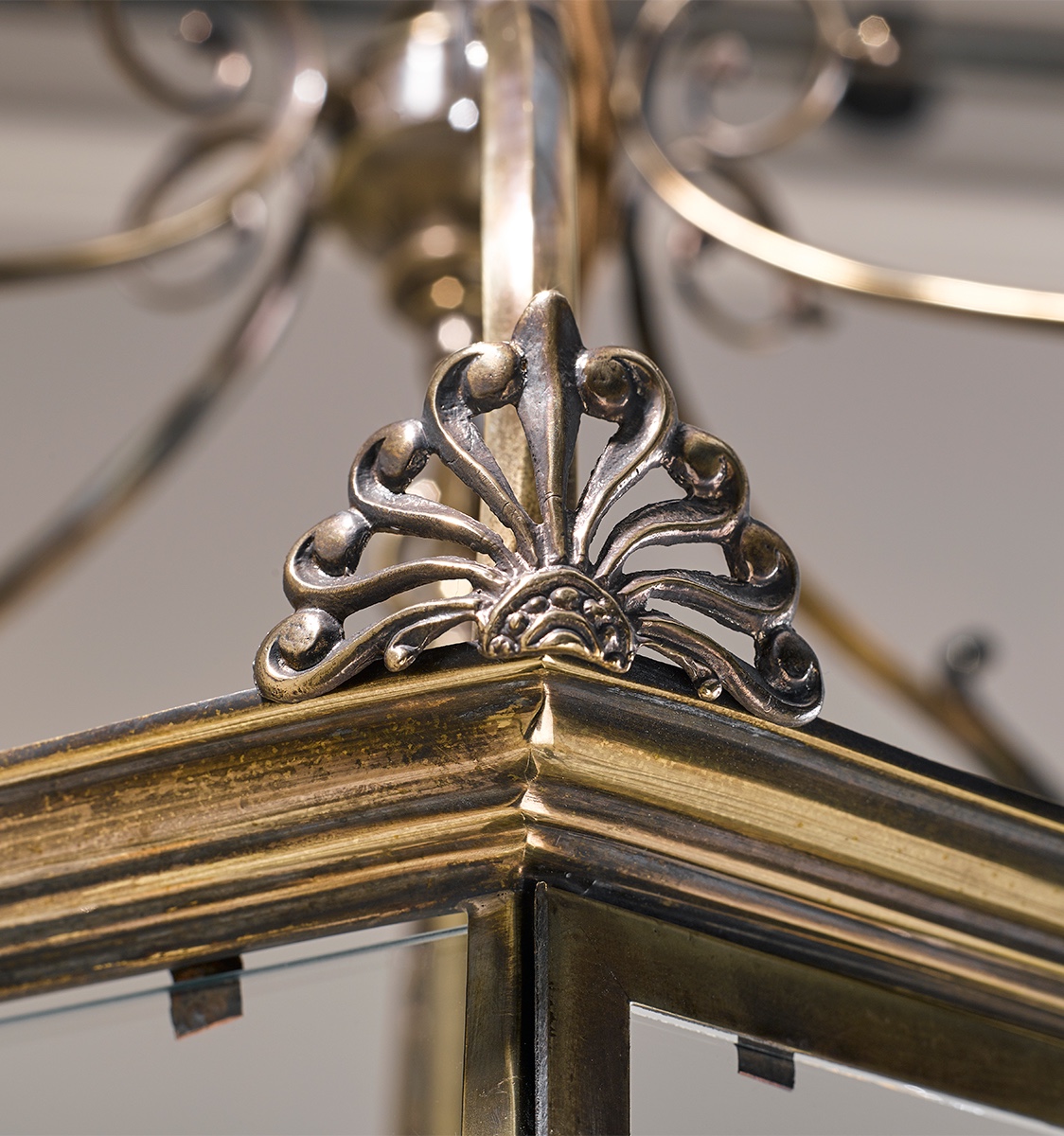 A smaller version of the Georgian Lantern. Inspired by an original C18th lantern of Robert's own collection, shown here in Antique Brass. The last image shows the size comparison between the (Large) Georgian Lantern and the Small Georgian Lantern. Please also note in the same image, the Large Georgian Lantern placed on the left is in a bespoke Antique Gilt finish.