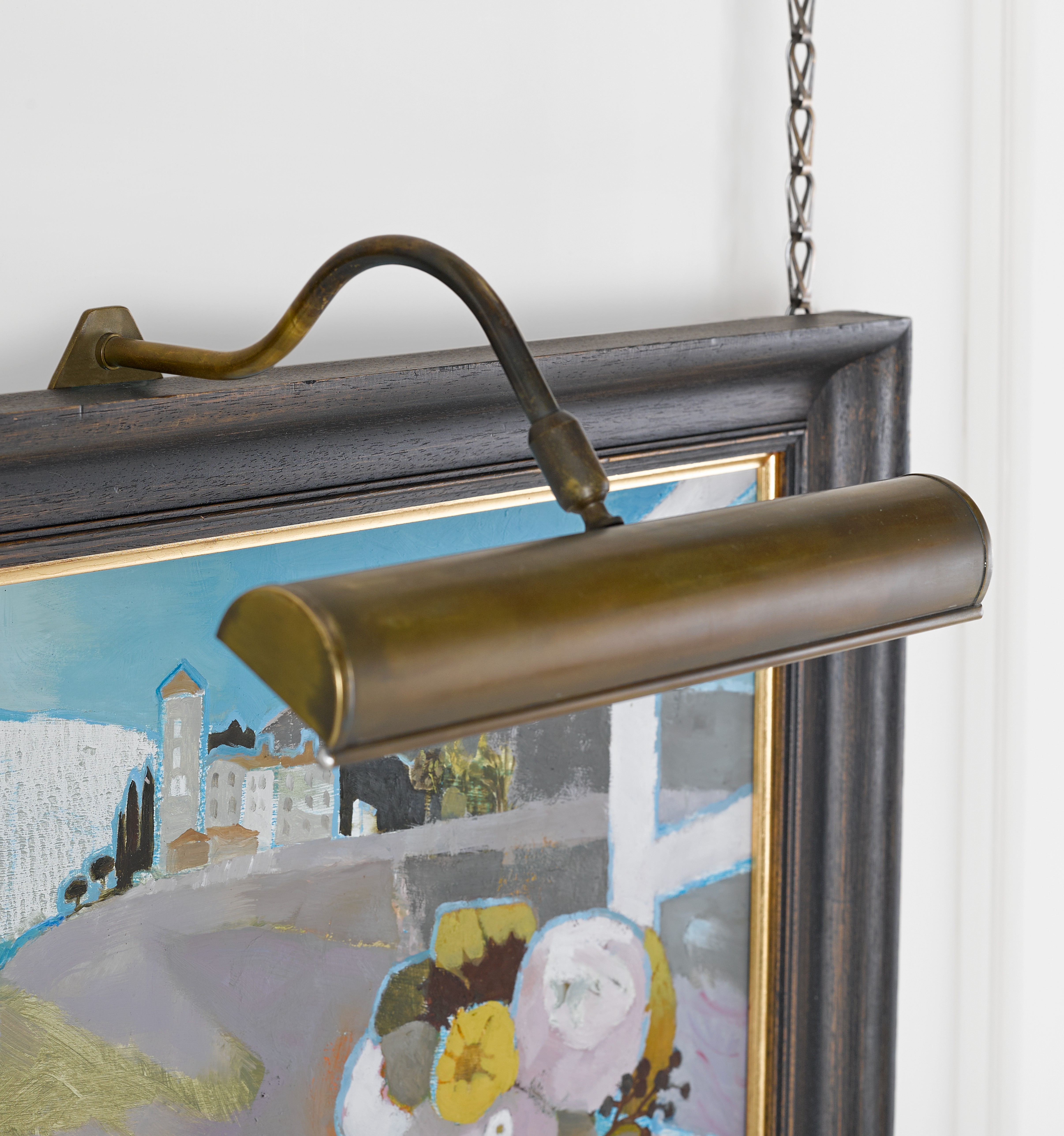 A classic picture light with swivel head, designed to be attached to either a picture frame or to be wall mounted. The forth and fifth images show the picture light frame mounted.