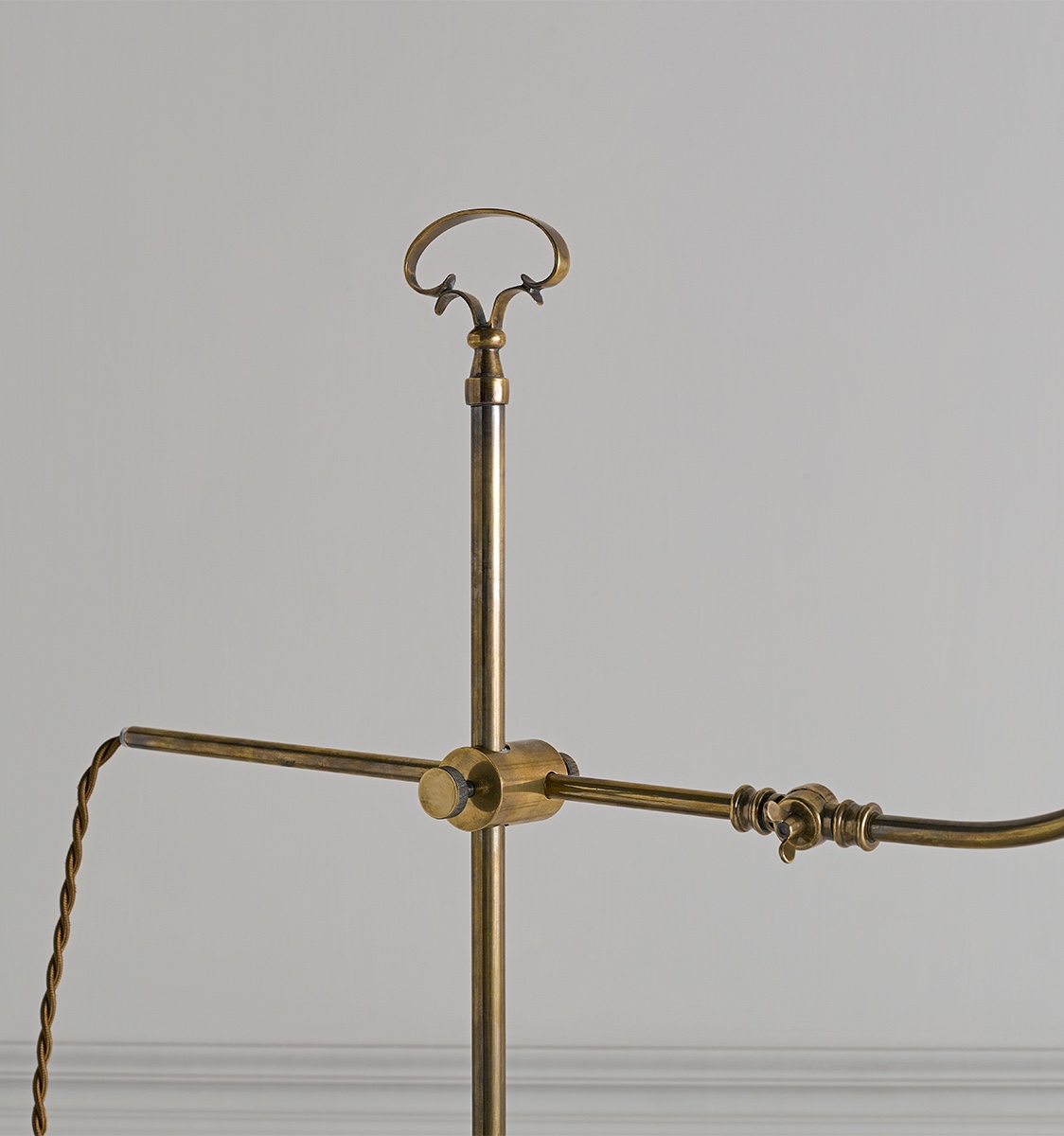 Our popular classic reading lamp has a simple spun brass base and is fully adjustable. Available finishes are Antique Brass and Antique Silver. Lampshades are sold separately.