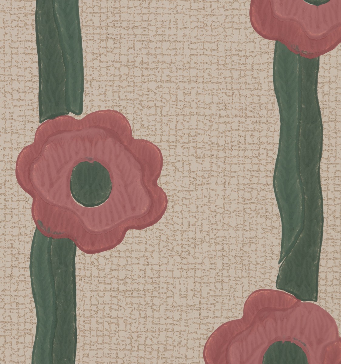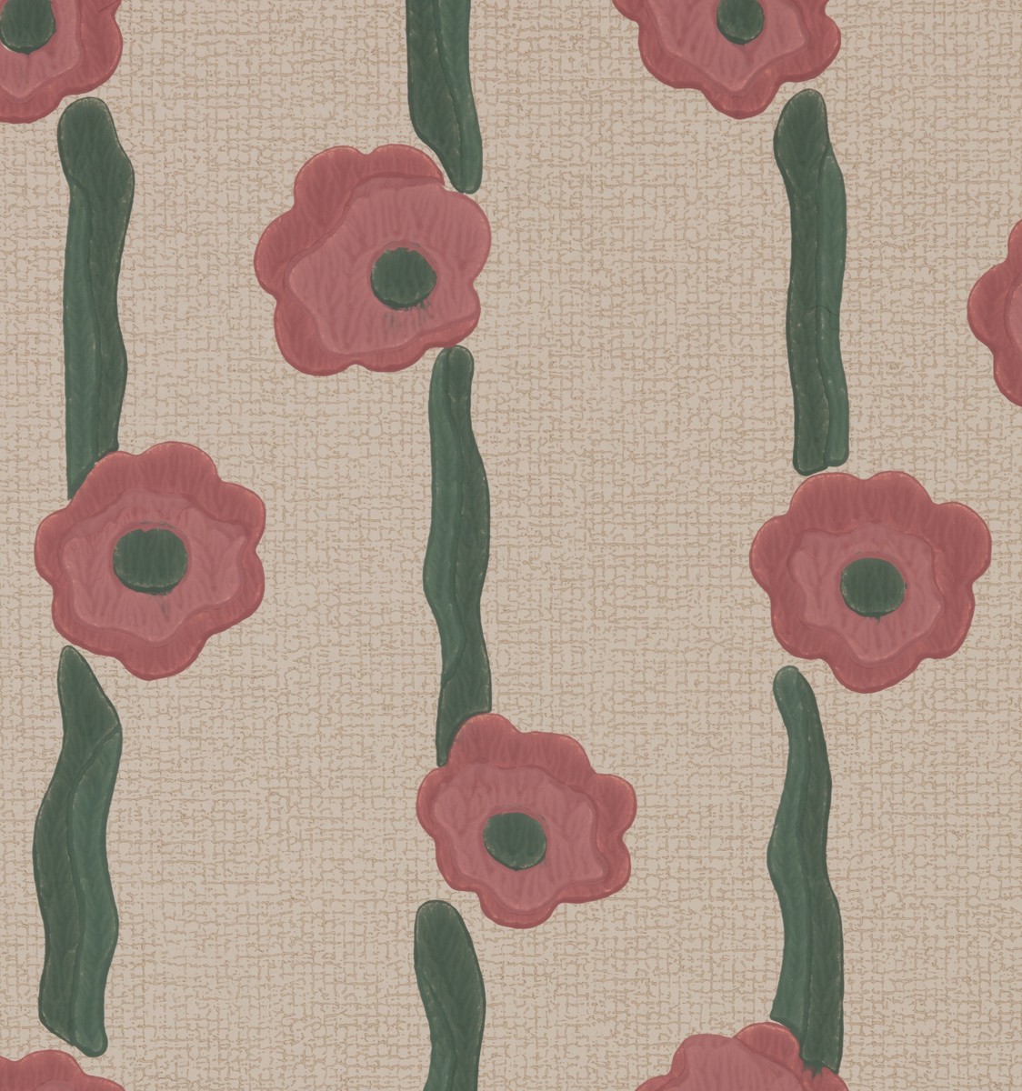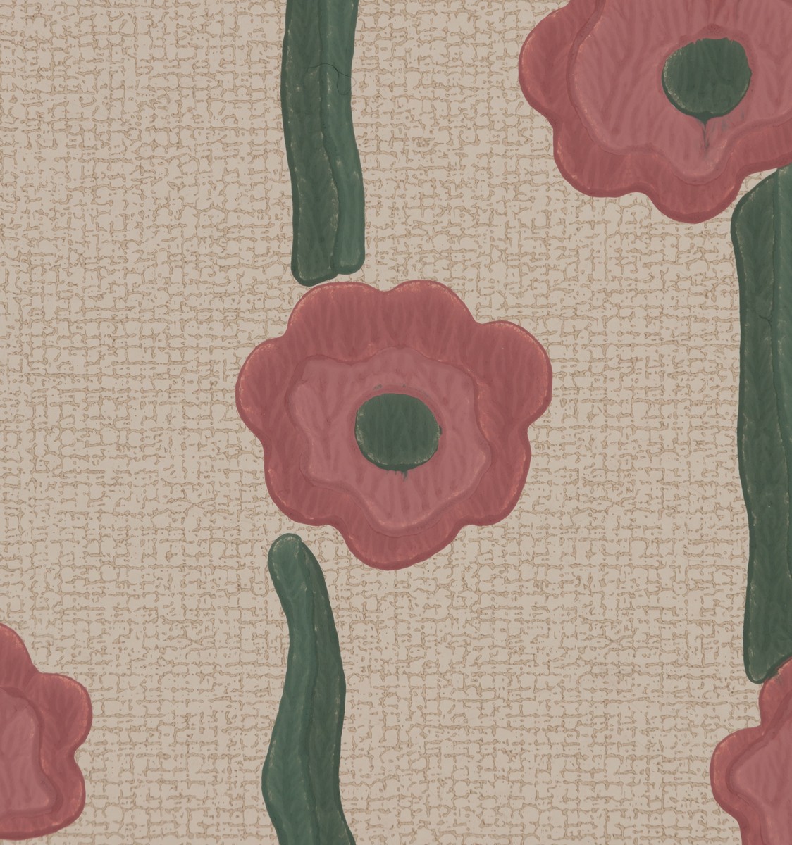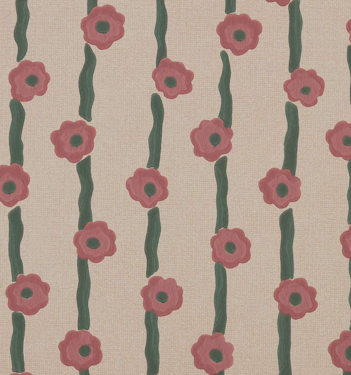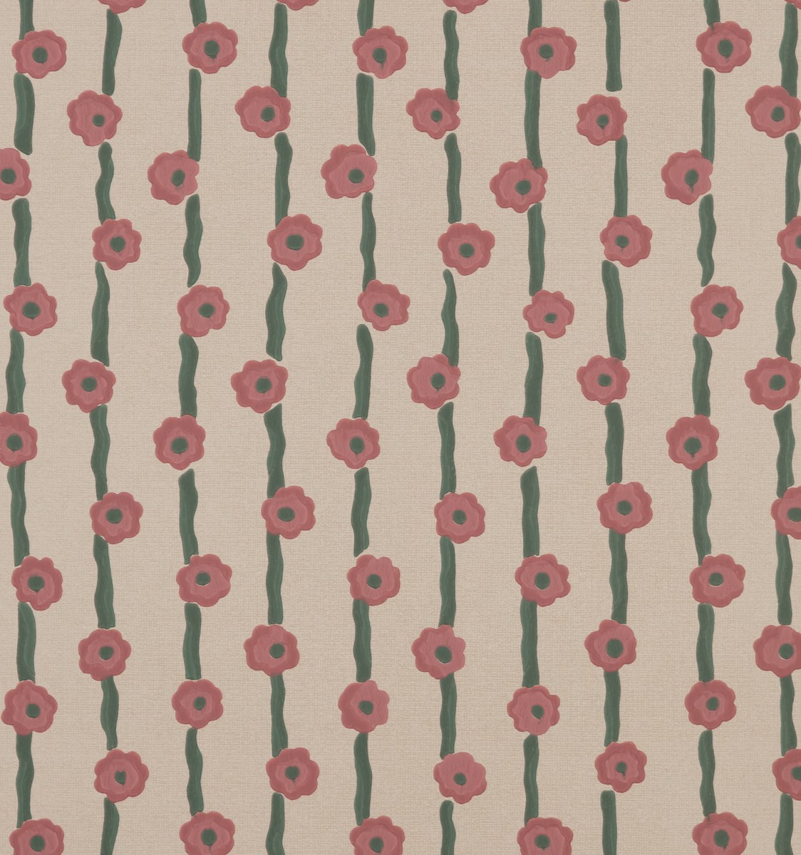 A design based on a pair of curtains belonging to Robert and named after the poppy fields in Pentire, Cornwall. Rotary printed flower and stem designs on heavily textured paper resemble the weighty linen used for the original curtains.