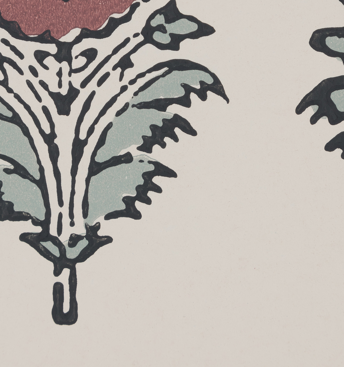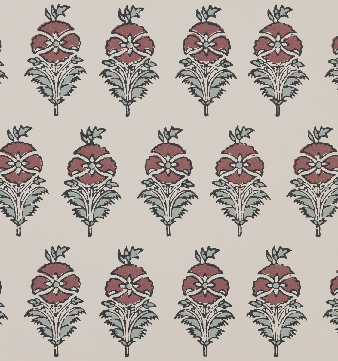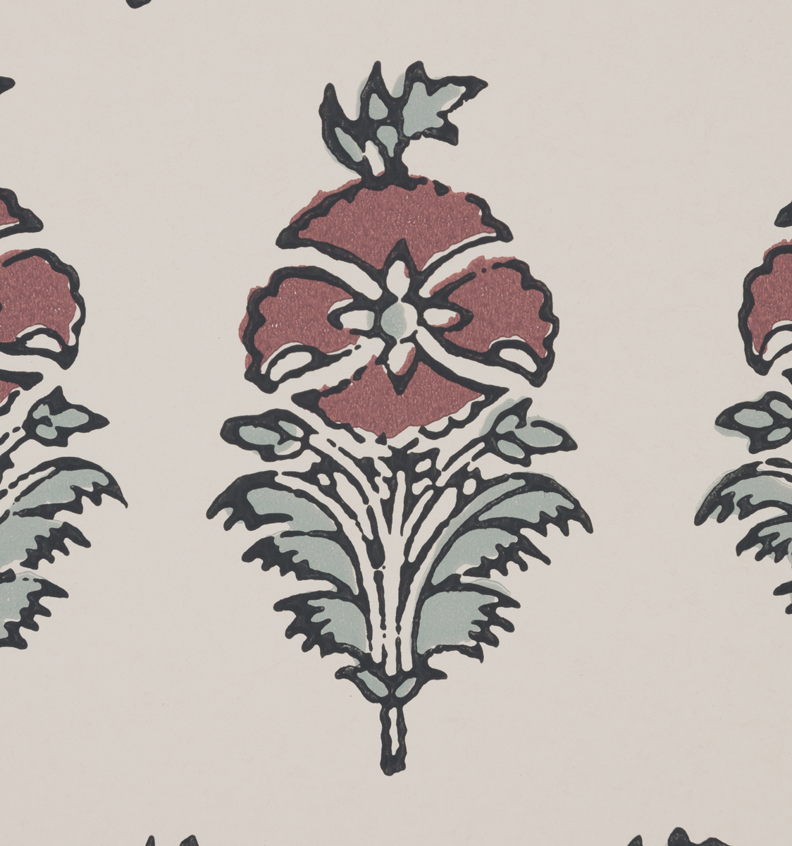 A striking wallpaper design based on one of our most popular fabrics of the same name. Originally inspired by a document textile found fluttering in a dusty shop in Jaipur, this rotary printed wallpaper allows each poppy to be slightly unique.