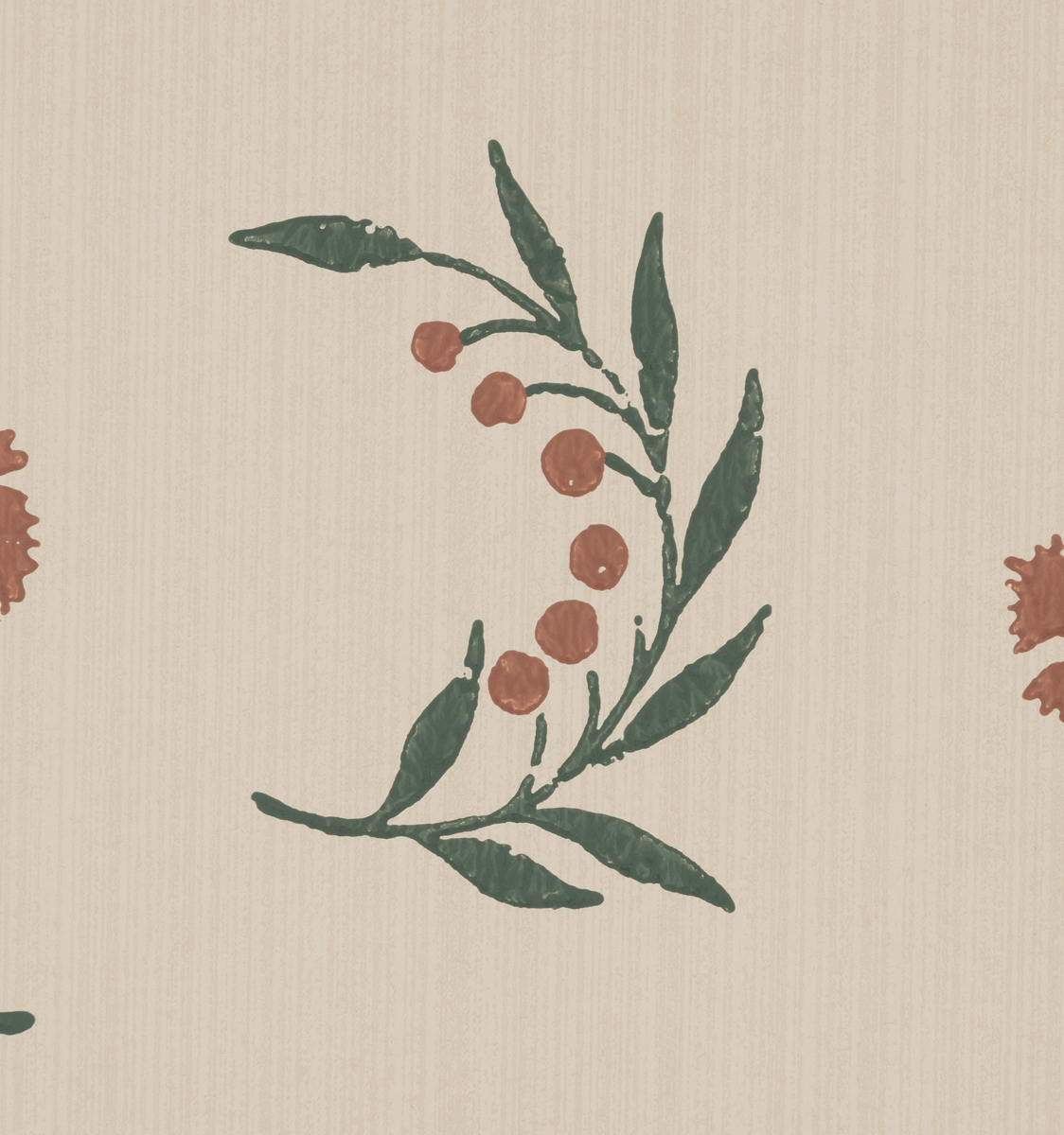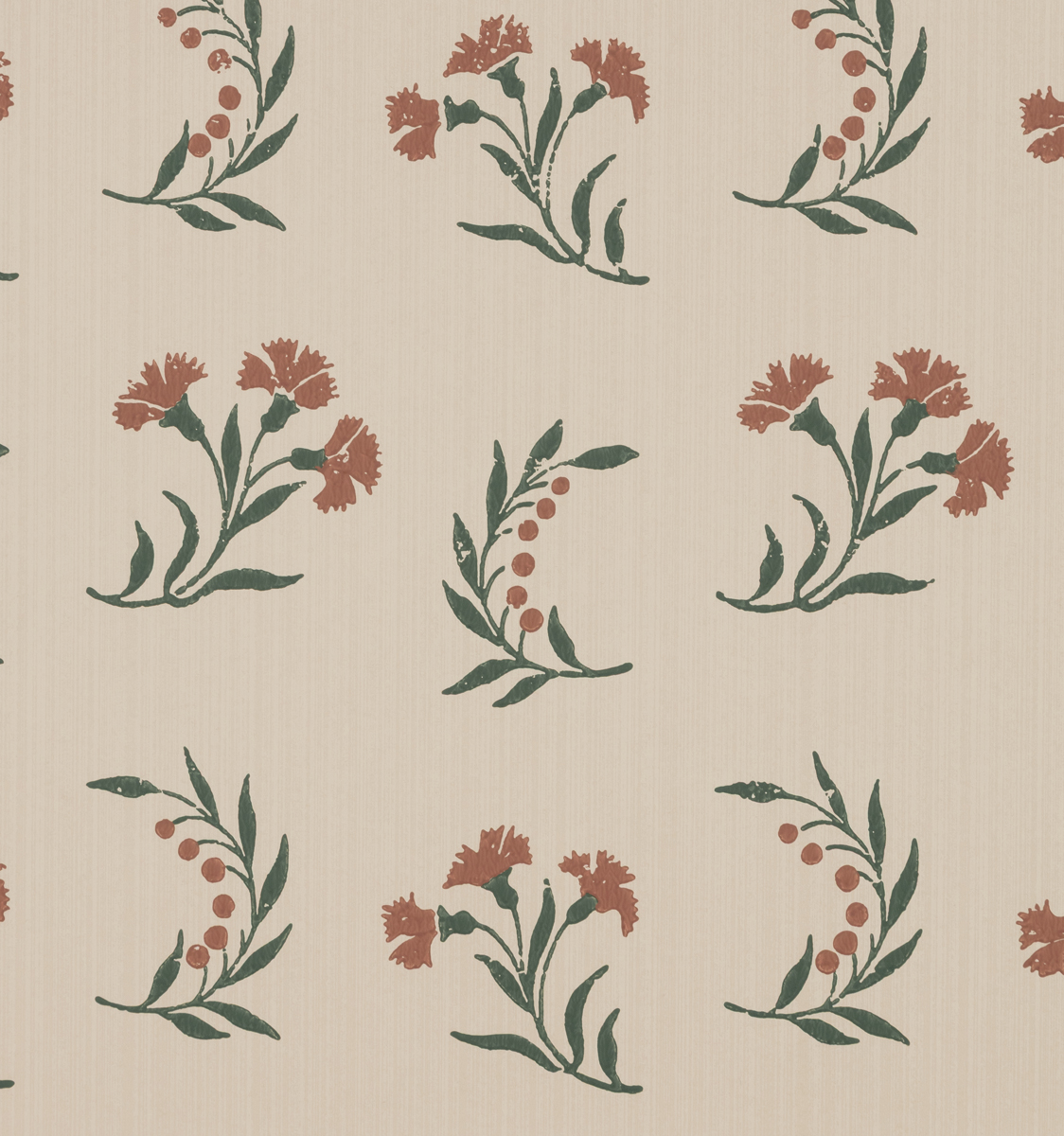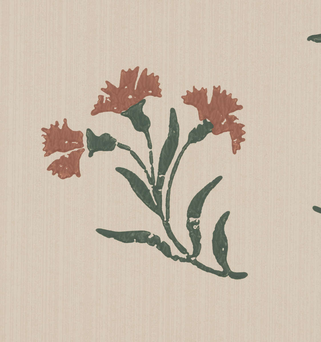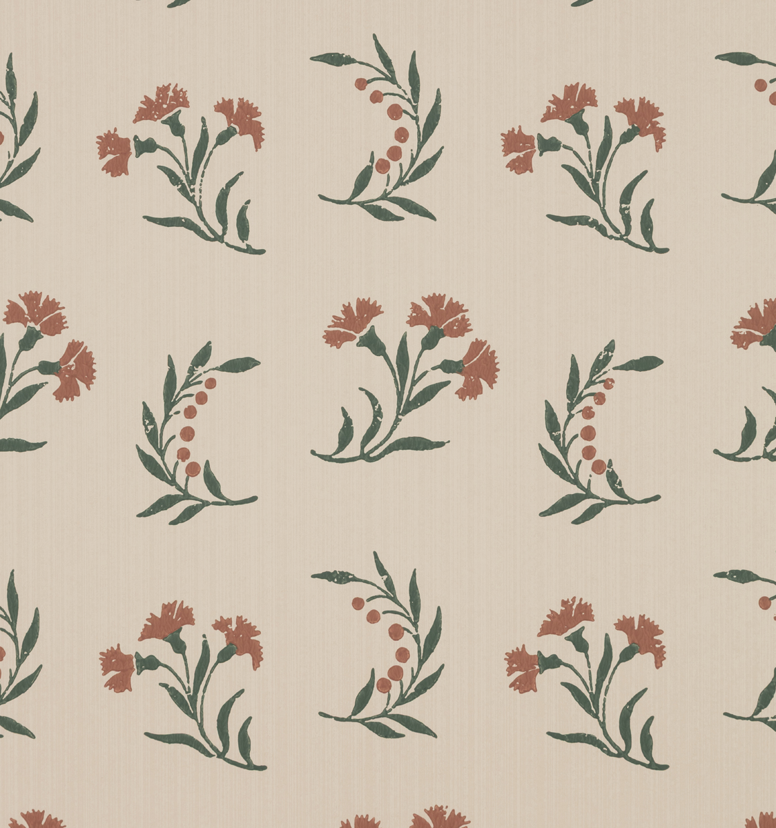 A subtle design of gilly flowers adapted from an original hand blocked print.