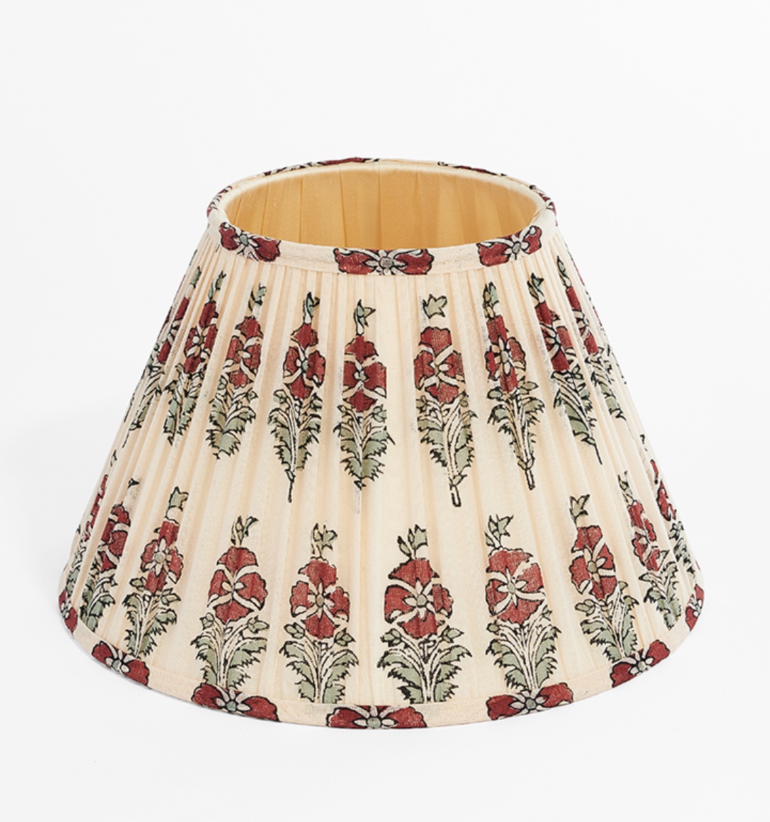 12" gathered fabric shade in our Robert Kime Field Poppy on Muslin fabric with gimble fitting.