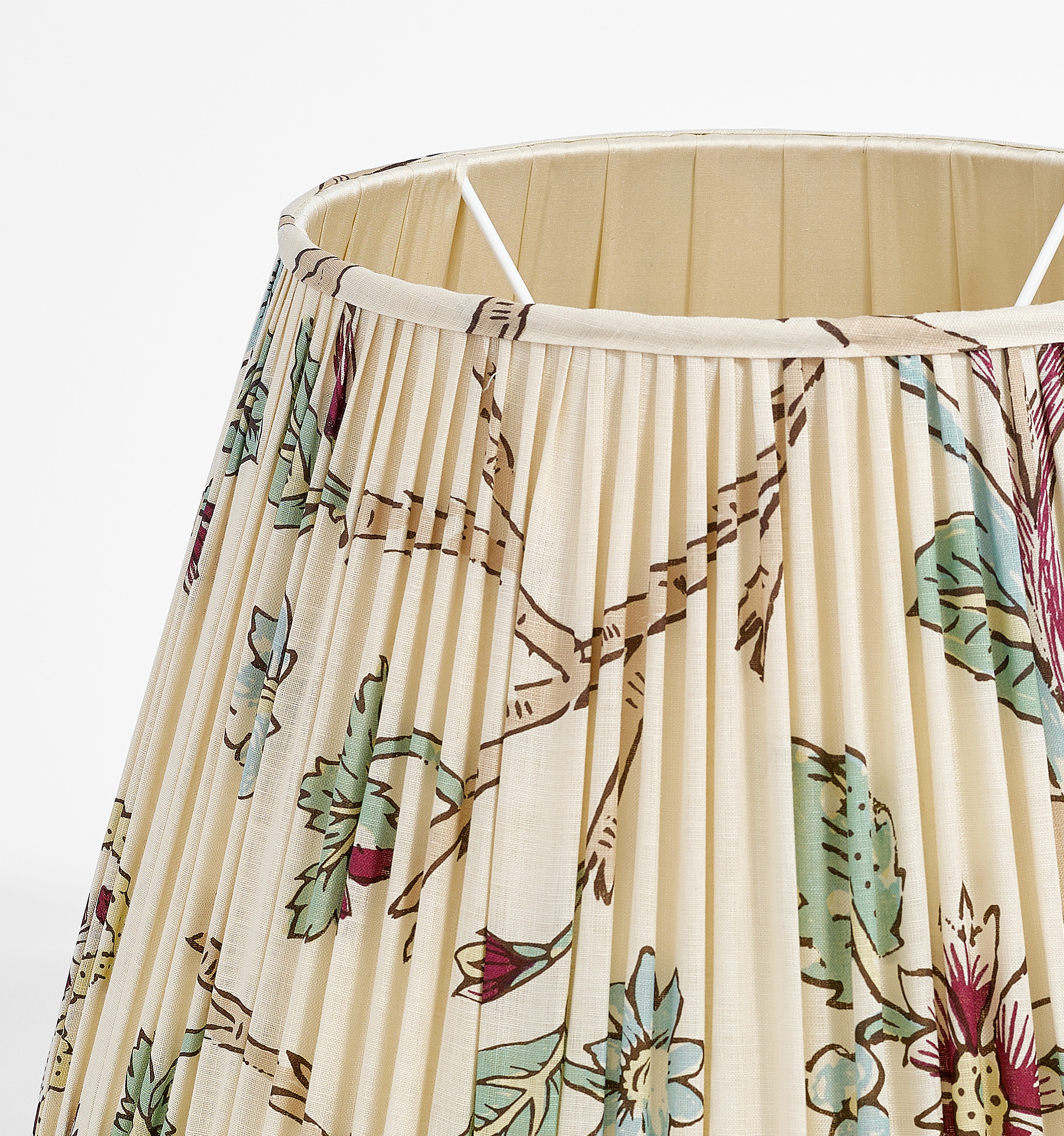 Our fabric lampshades are all hand-stitched in England and can be made to order in any size. For more information, please contact our showroom.