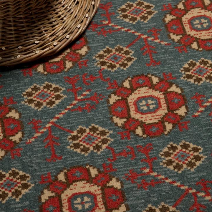 Our carpets are handwoven from pure British wool on traditional narrow looms in the north of England. The carpet designs can be used as runners or sewn together as fitted, wall-to-wall or finished ground carpets at any size, incorporating overall patterns and borders to create the finished design.
