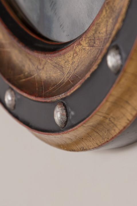 The frames of the Drombeg mirror are meticulously and individually made from tulipwood on lathes in the workshop, before being assembled by hand. Each features a moulded edge with alternating bands of black lacquer and gilt, which are finished using traditional techniques. Coated with layers of gesso and shellac they are then hand finished to replicate the natural patina that would develop over time.